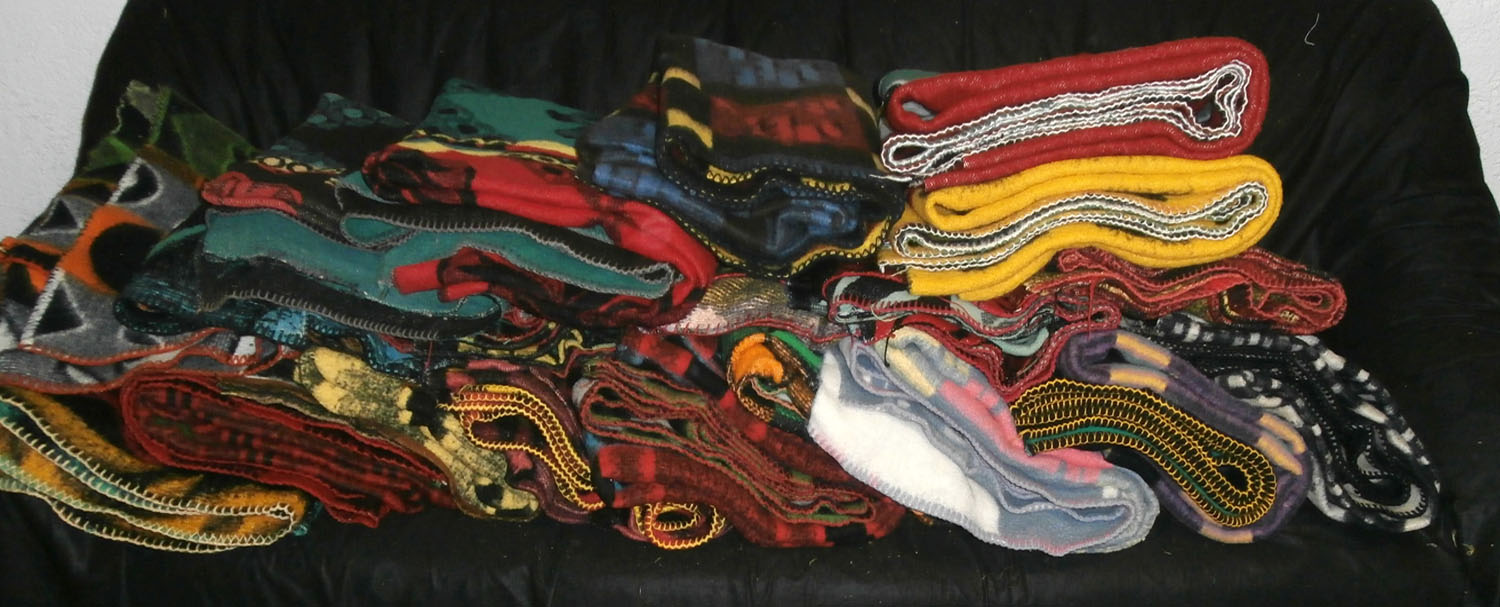 Wir haben aussortiert und einen grossen Karton voll Decken zusammenbekommen, die zerrissen oder voller Löcher sind.