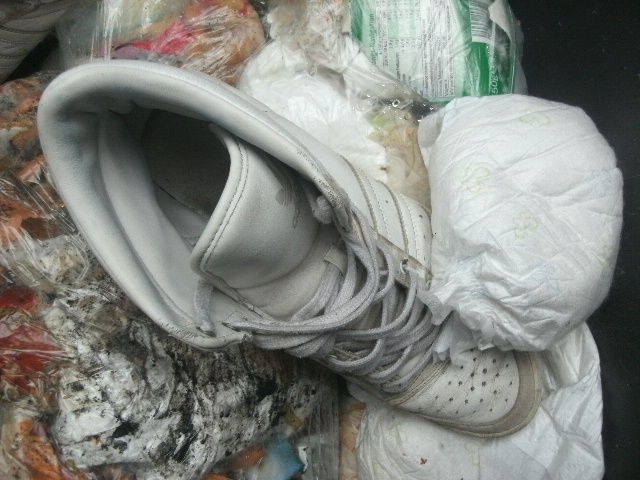 Alte Schuhe in Gelben Säcken kommen recht häufig vor.
