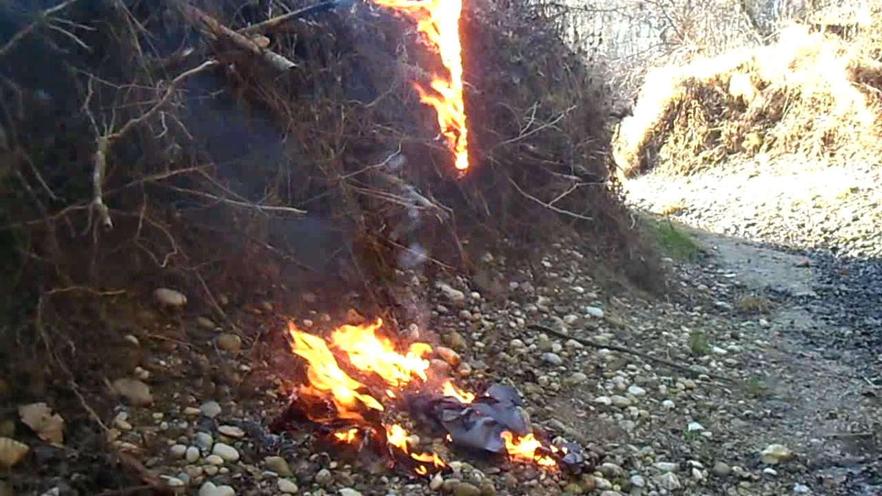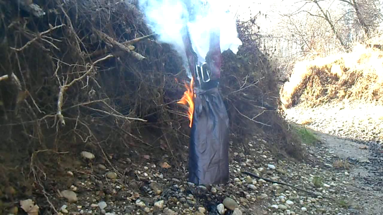 Heute im Angebot: 2 Dirndl in einer Verbrennung. Die beiden Teile gehören zusammen, deshalb verbrenne ich auch beide gemeinsam. Mein Plan war das das Dirndl der Mutter das der Tochter in Flammen setzt, aber das große Dirndl wollte nicht so wie gedacht, also eine planänderung. (Sieht man daran das das Frauendirndl unten so ''angefressen'' ist).