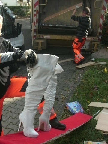 Dann waren schon die Orangenen Engel da um die ganzen alten Sneaks in den "Sneakerhimmel" zu befördern; - und die Mutter anscheinend noch als nervige "Aufpasserin".