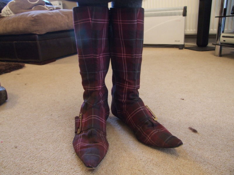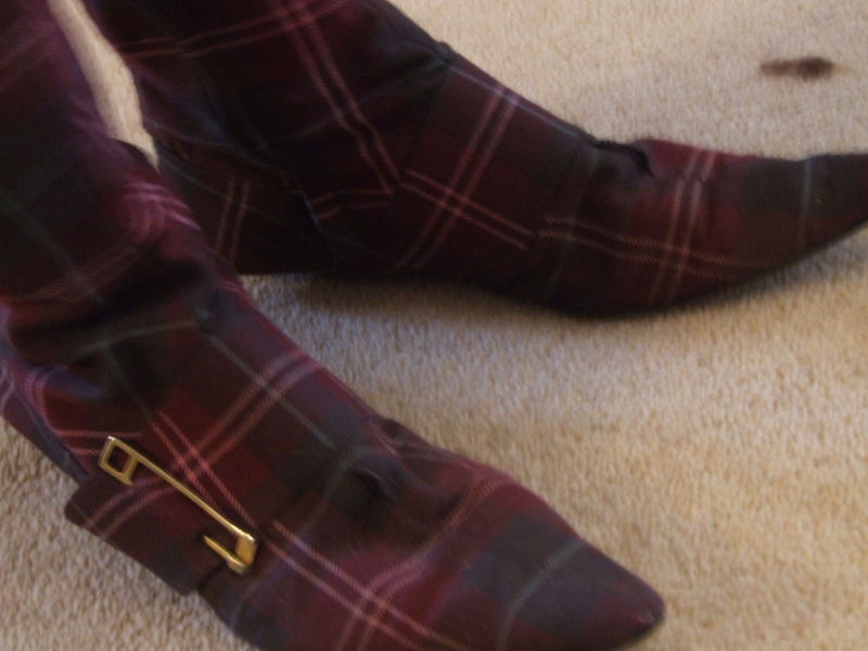 Da ich selbst nicht unbedingt auf High Heels stehe, sondern eher Kittenheels oder Queenie-Absätze mag und diese Musterung mir auch gut gefällt, werden bei solchen Schuhe meine "Sinne" eh schon wach. Die hohen Schäfte finde ich eh geil und auch der schon sehr getragene Zustand. Auf Schuhe und Stiefel mit Mittelnaht stehe ich eh und dann noch diese eleganten Ziernadeln. Ein schon sehr schottisches Design; aber noch existiert ja noch das Vereinigte Königreich.