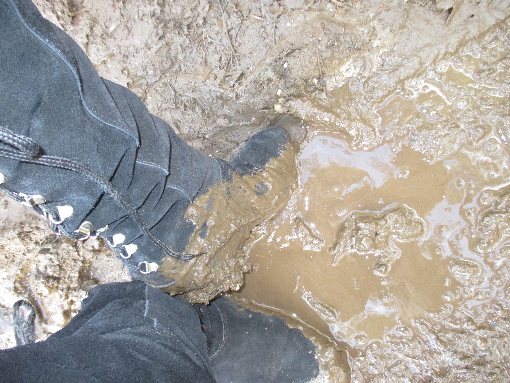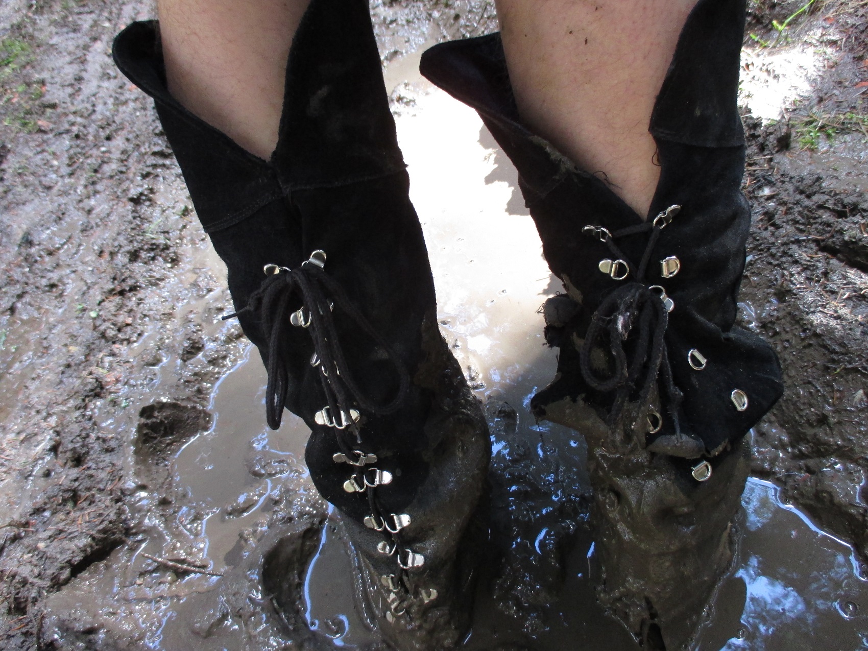 heute hatte ich mal Zeit, weiter Bilder reinzustellen. auf dem ersten sieht man wie sich die Stiefel gegenseitig schmutzig machen und auf dem nächsten, wie die lockere Erde eines Maulwurfhaufens an den nassen Stiefeln haften bleibt.