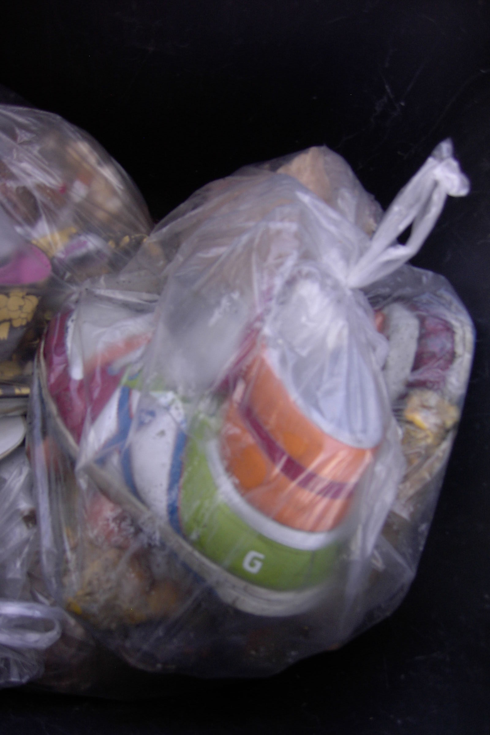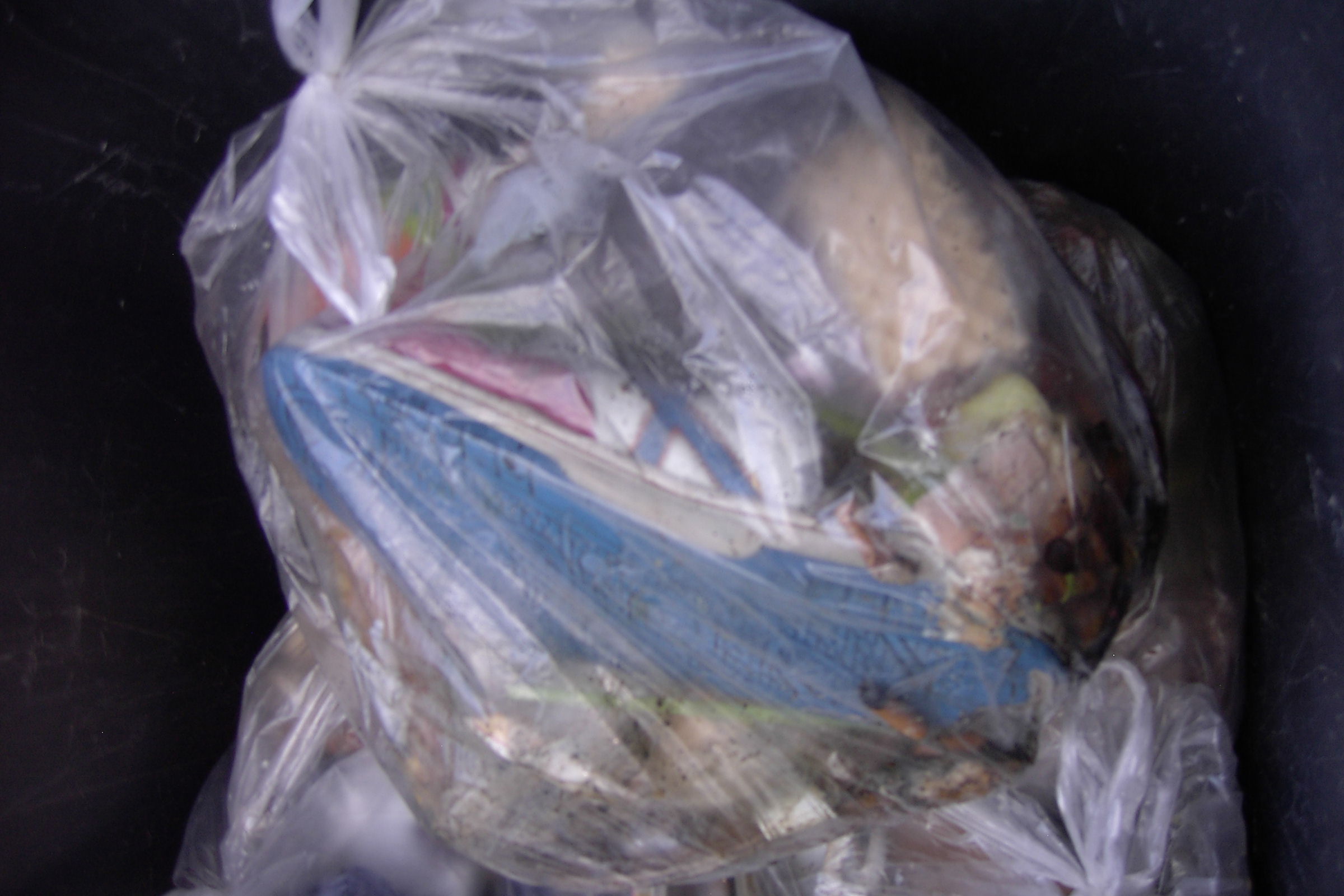 Noch schnell ne kaputte Fake-Handtasche im Müllbeutel in unsere Tonne gestopft.