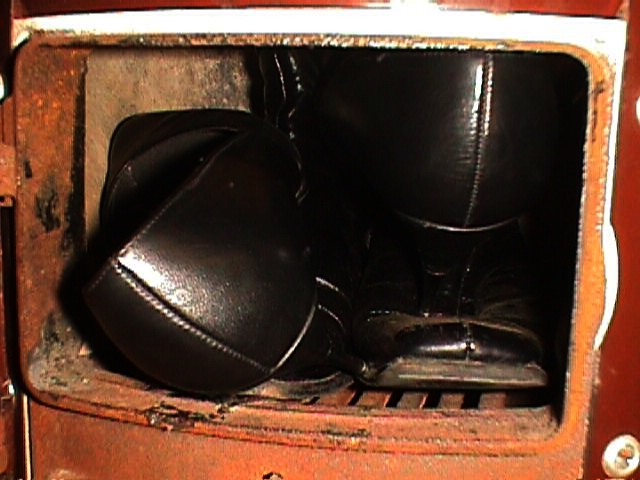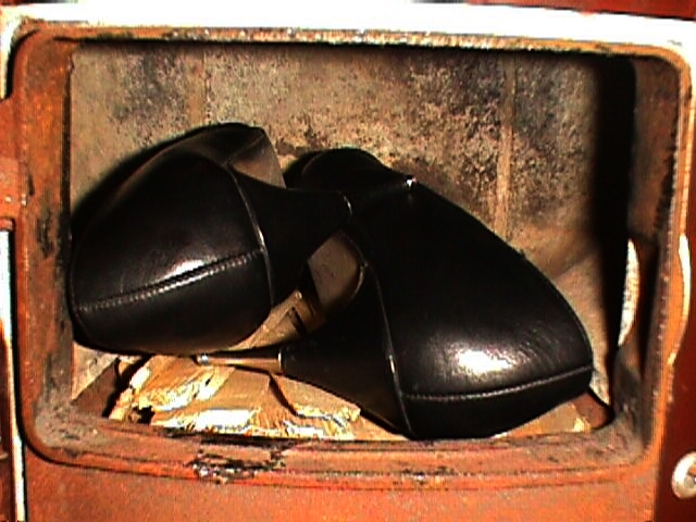 Ich habe noch gut in Erinnerung, wie die langsam schmelzenden Absätze brennende Tropfen in den Aschekasten sickern ließen, die dort weiter brannten, während sich oben auf dem Rost das Leder des Schuhes/Stiefels langsam windend von den fauchend fackelnden Sohlen löste und der Ofen sich stetig langsam erwärmte. Die Temperaturen im Brennraum erreichten bei kontinuierlichem Nachlegen solche extremen Werte, daß Metall-Reißverschlüsse und Zinkschnallen funkenspritzend verbrannten (die mir so manche Feinstrumpfhose zerlöchert hatten) und sogar die Federeisen zu Schlacke verschmolzen! Mancher lange Stiefel begann bereits so schnell und fürchterlich zu brennen, noch während ich ihn hineinstopfte! Und, nicht zu vergessen, am Besten zog der Ofen, wenn man die Tür ein klein wenig offen ließ, daß oben manchmal die Flammen herausschlugen und das Höllenfeuer bestialische Brenngeräusche entwickelte! :twisted: :twisted: :twisted: