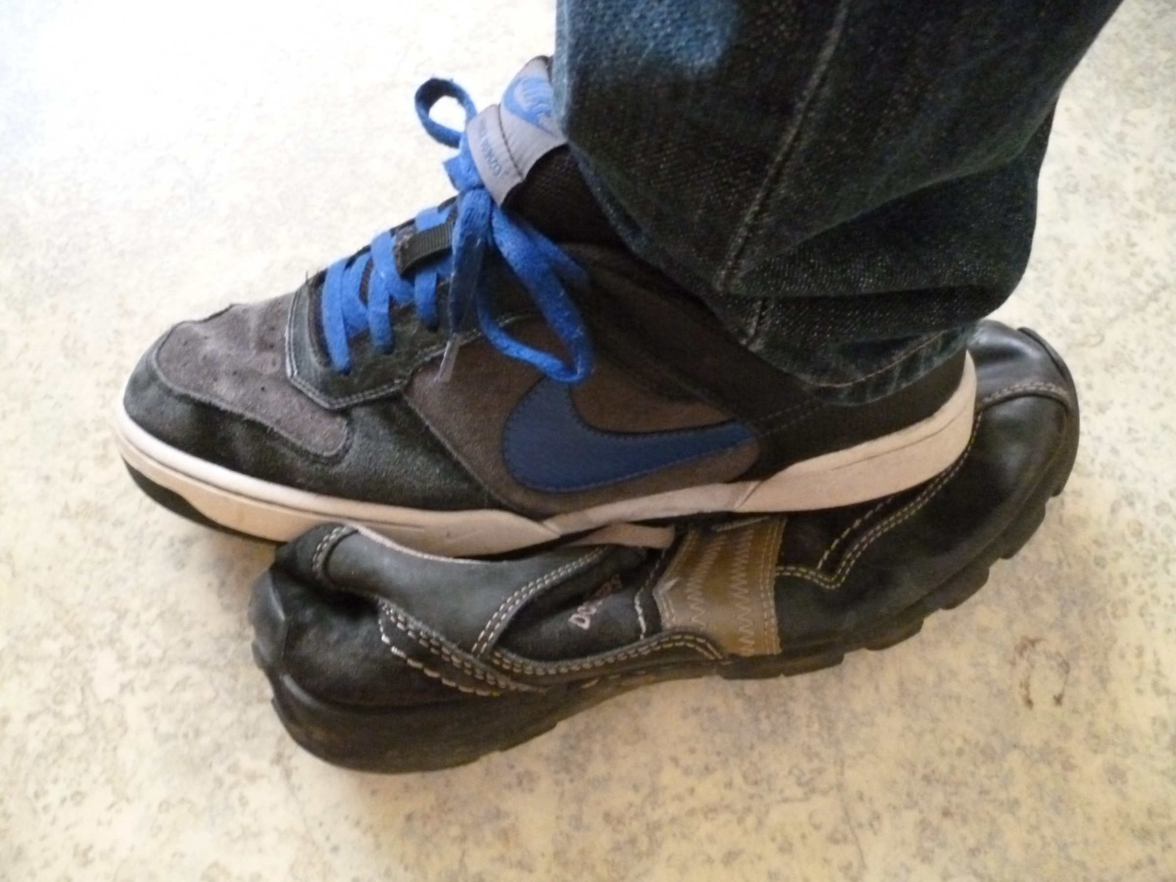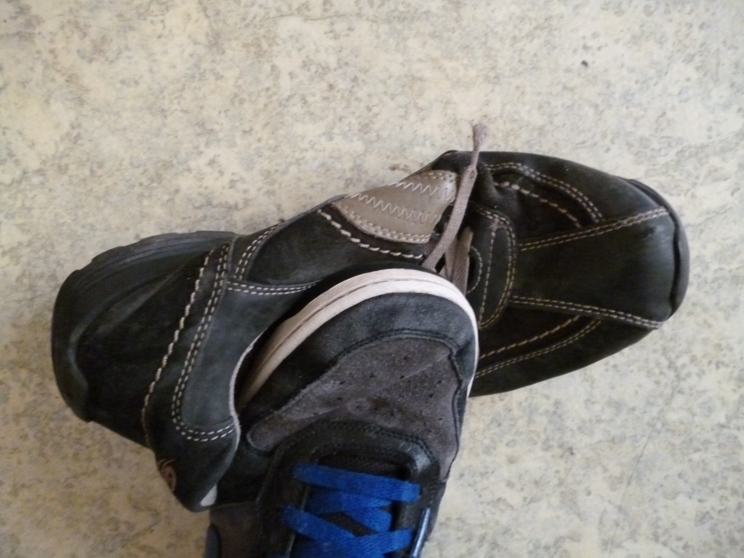 Hier mal ein Update zum übrig gebliebenen rechten Dockers Schuh,da ich nicht so recht weiß wie ich den am schönsten zerstören soll,habe ich mich für den langsamen Weg entschieden,indem der Schuh in der Wohnung langsam zertreten wird,er liegt im direkten Weg ,sodass ich jedes mal drüber laufen muss,waren bestimmt jetzt schon mehrere hundert Male,wie das aussieht zeigen die Bilder und der aktuelle Zustand des einst so lang getragenen und geliebten Treters.Wer noch ein paar Ideen hat,wie ich dem noch zusetzen kann,immer her damit.