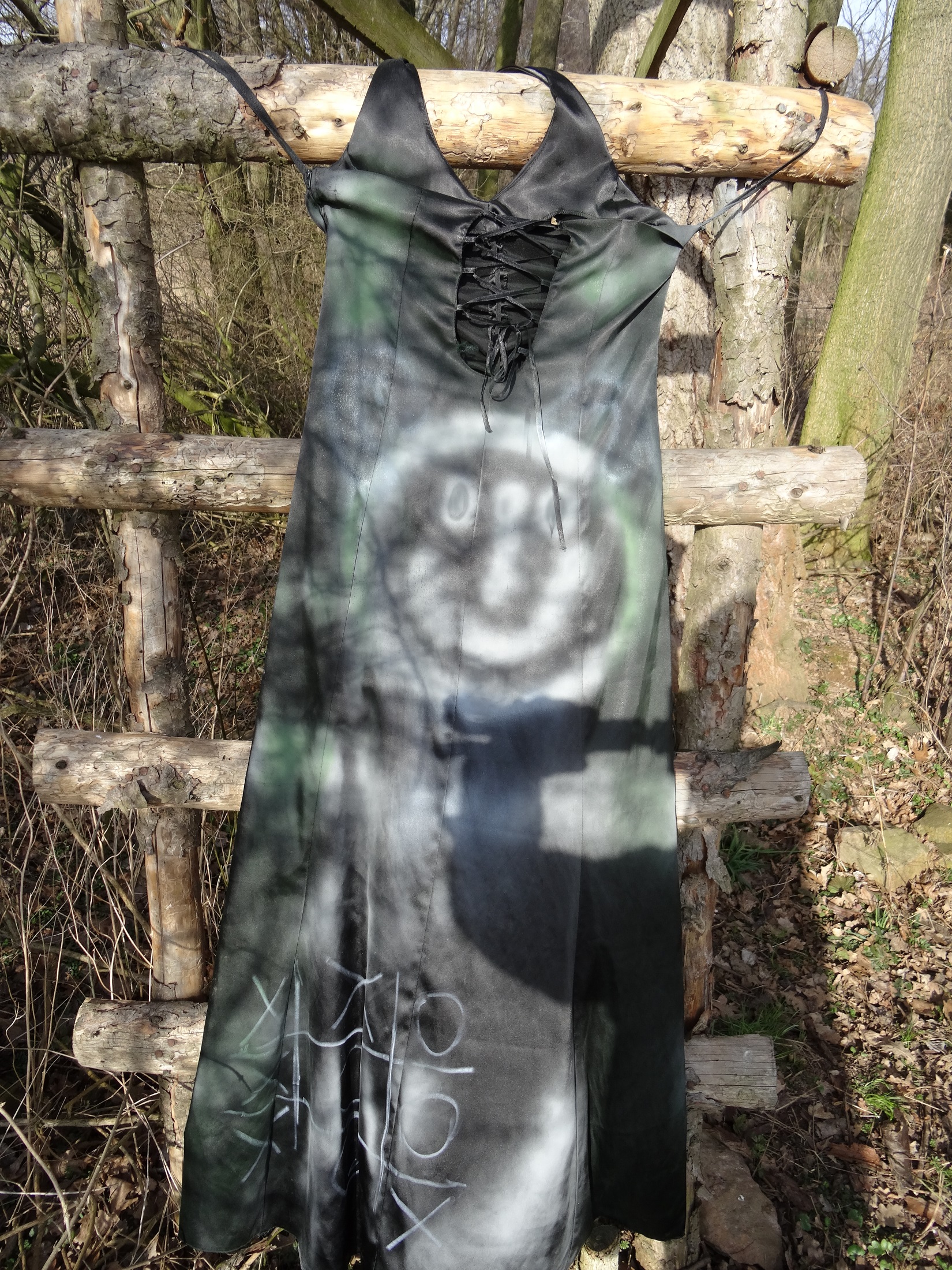 Das Kleid mit verschiedenen hellen lackfarben bemalen und wieder zurück in den Schrank