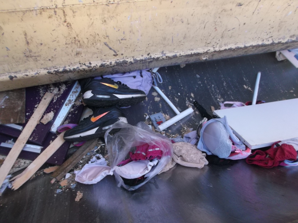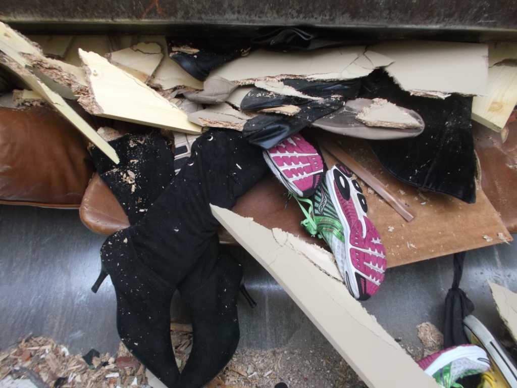 - Aus dem Schuhschrank und Anjas Schuhen und Stiefeln wurde "Pressmüll".
