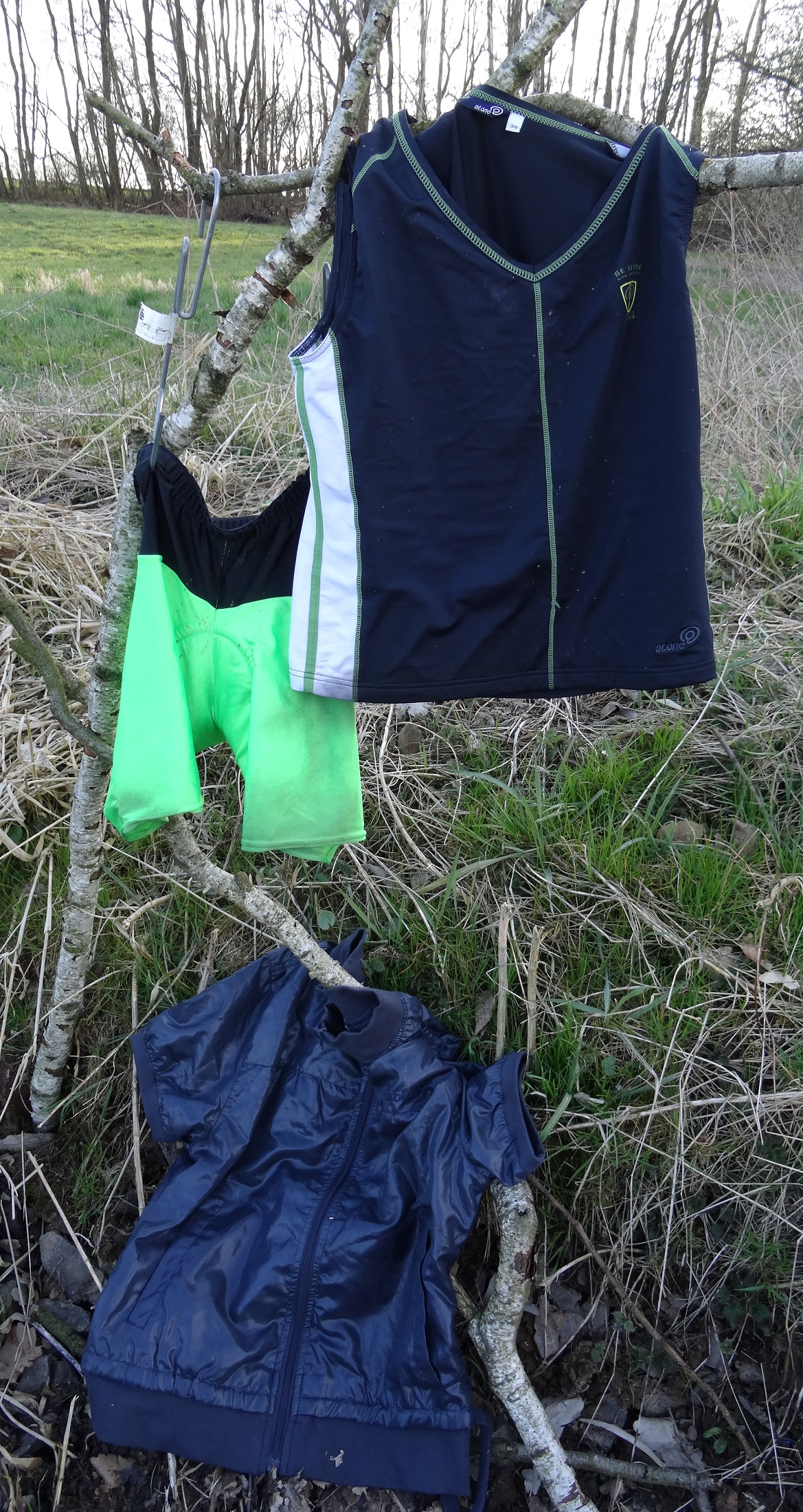 Da es das Triathlonoutfit nicht mehr gibt, musste ich Ersatz finden. Hab ne schöne Wanderhose aus polyamid und ein altes Softshellshirt meiner Freundin gefunden. Also die Abstimmung kann weiter gehen, halt mit Ersatzoutfit.