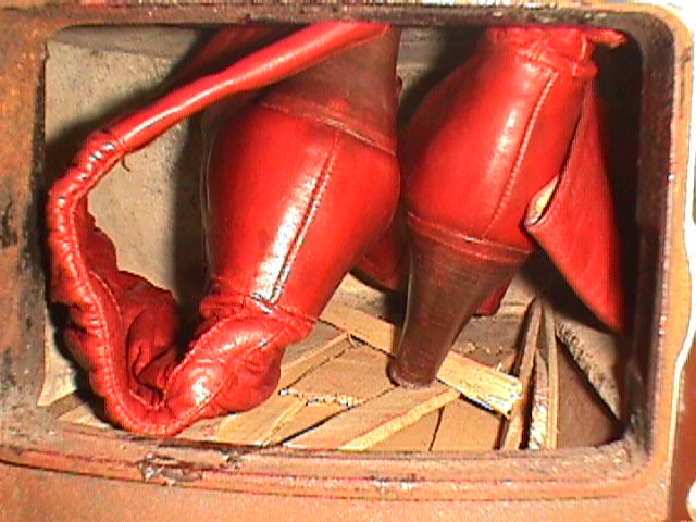 Die Zeilen mit den hellbraunen Stiefeln kann ich nicht oft genug lesen. Bitte schreib doch, ob deine Mutter noch weitere Schlauchstiefel oder Stulpenstiefel, vielleicht mit noch höheren Absätzen verbrannt hat. Hat sie ihre Entscheidungen nach dem Auspacken kommentiert? Welche Stiefel hatten gar keine Chance? Beschreibe ruhig die Farbe der Stiefel (jedes einzelne Paar, das dir noch in Erinnerung ist, ob sich im Laufe der Jahre die Mode geändert hat, vielleicht Stiletto-Absätze oder so. Wie war ihre Vorgehensweise vor dem Kochen oder vor dem Baden, hat sie, wenn zu viele Altschuhe anfielen, Stiefel vielleicht einige Zeit irgendwo zwischengelagert? Hat sie noch geschenkte Stiefel einige Zeit getragen? Was fühltest du, als deine Mutter entschied, ein oder mehrere Paar sehr schöne Lederstiefel, die du gerne gerettet hättest, fest entschlossen und unumkehrlich zu verbrennen. Hast du die Stiefelverbrennungen öfter beobachtet, musstest du einfach hinsehen, wie die Lederstiefel ein Raub der Flamen wurden?
