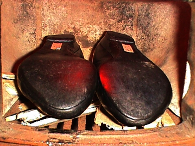 Dann wollen wir uns doch mal vergegenwärtigen, wie es seinerzeit bei meiner Mutter am Badeofen ausgesehen haben könnte, als sie die zu kleinen Stiefel verbrannte. (Alle Bilder nachgestellt.)