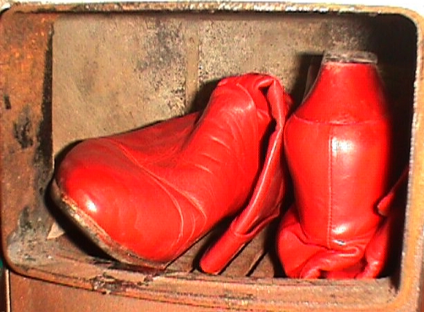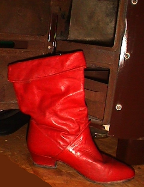 Während ich die nicht noch einmal getragenen schwarzen, nietenverzierten Stiefeletten nach einigen Jahren "Liegezeit" verbrannt hatte, trug ich diese Roten noch sehr oft und gern. Beim ersten Umzug hatte ich sie dann in einen Karton verpackt und seitdem nicht wieder ans Tageslicht gebracht.