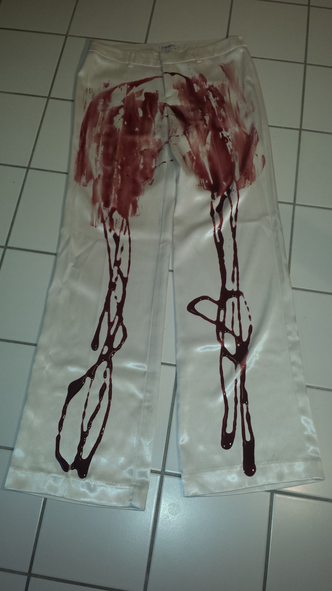 Hier zu sehen: Die weiße Satinhose vom Hosenanzug, richtig teuer, sehr geil weich und in einer super Qualität.