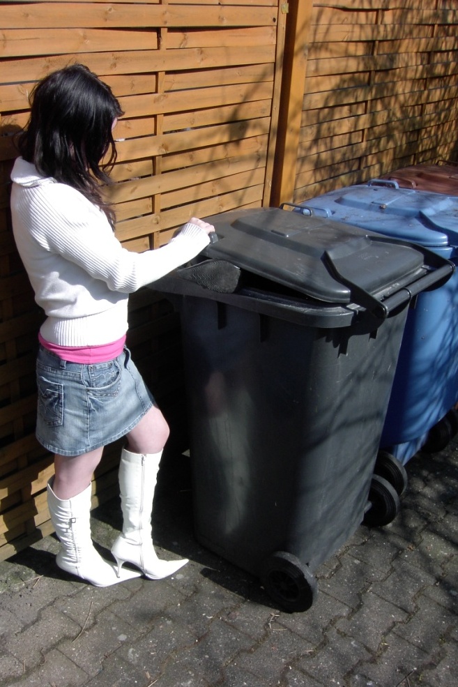 Wenn auch die gerade weggeworfenen Stiefel immer noch ein wenig aus der Mülltonne lugten, meinte das Mädel, dass so die Müllmänner sich wohl nicht beschweren könnten.