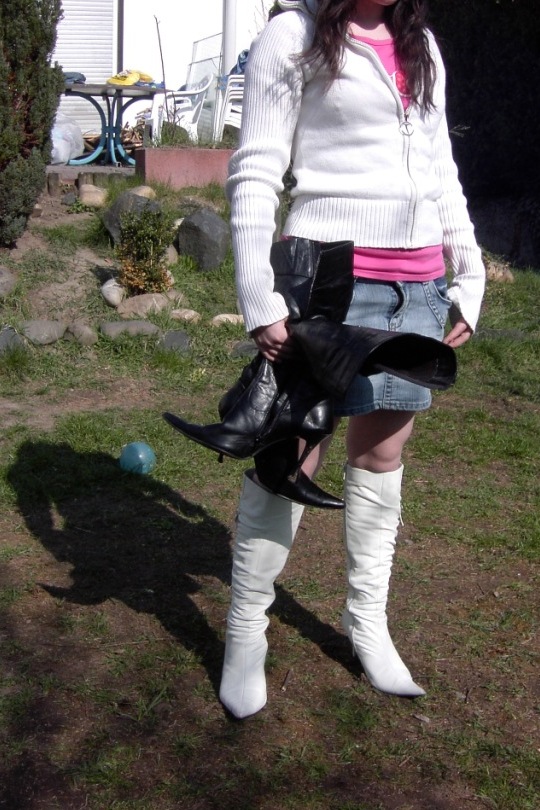 auf dem letzten Weg der ausrangierten schwarzen Stiefel, konnte ich schon den Einsatz der weißen Stiefel fotografieren. Es war offensichtlich, dass auch sie nicht von dem Mädel geschont werden würden: