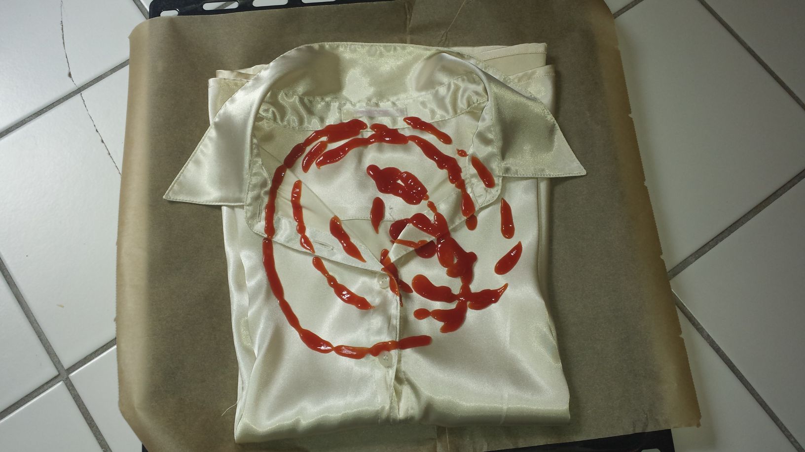 Habe mal einen Burger aus wunderschönen Satinblusen gebaut, dazwischen immer mit einer Schicht Ketchup, denn ich mag es gerne saftig.