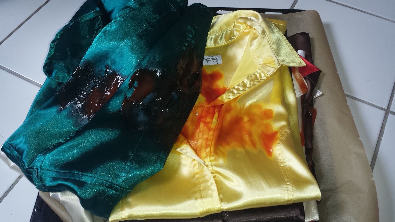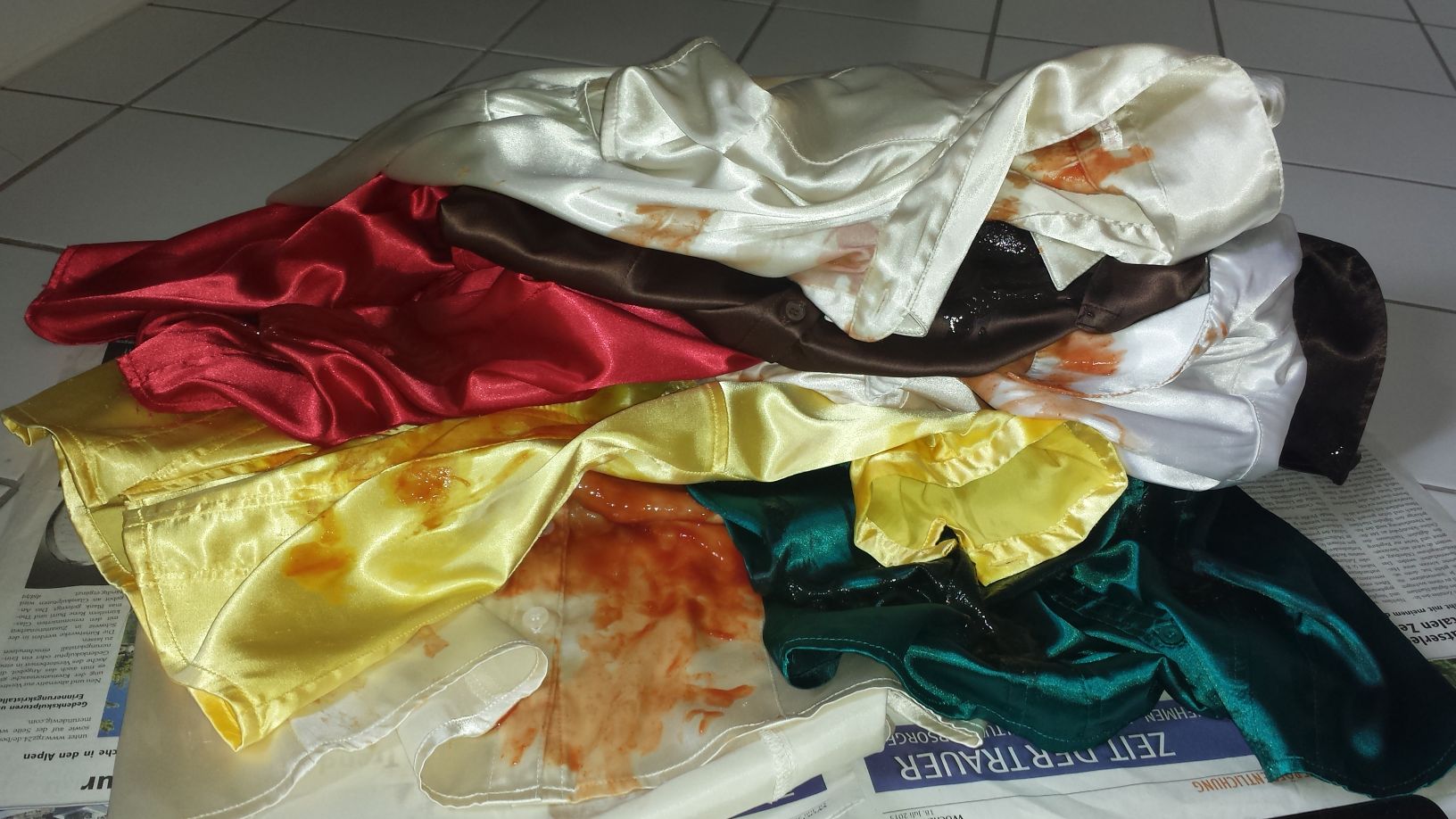 Sollten ja auch nur eingesaut u nicht komplett vernichtet werden, da einige davon noch getragen werden. Hängen alle wieder schön sauber u gebügelt in all ihrem Glanz im Schrank.