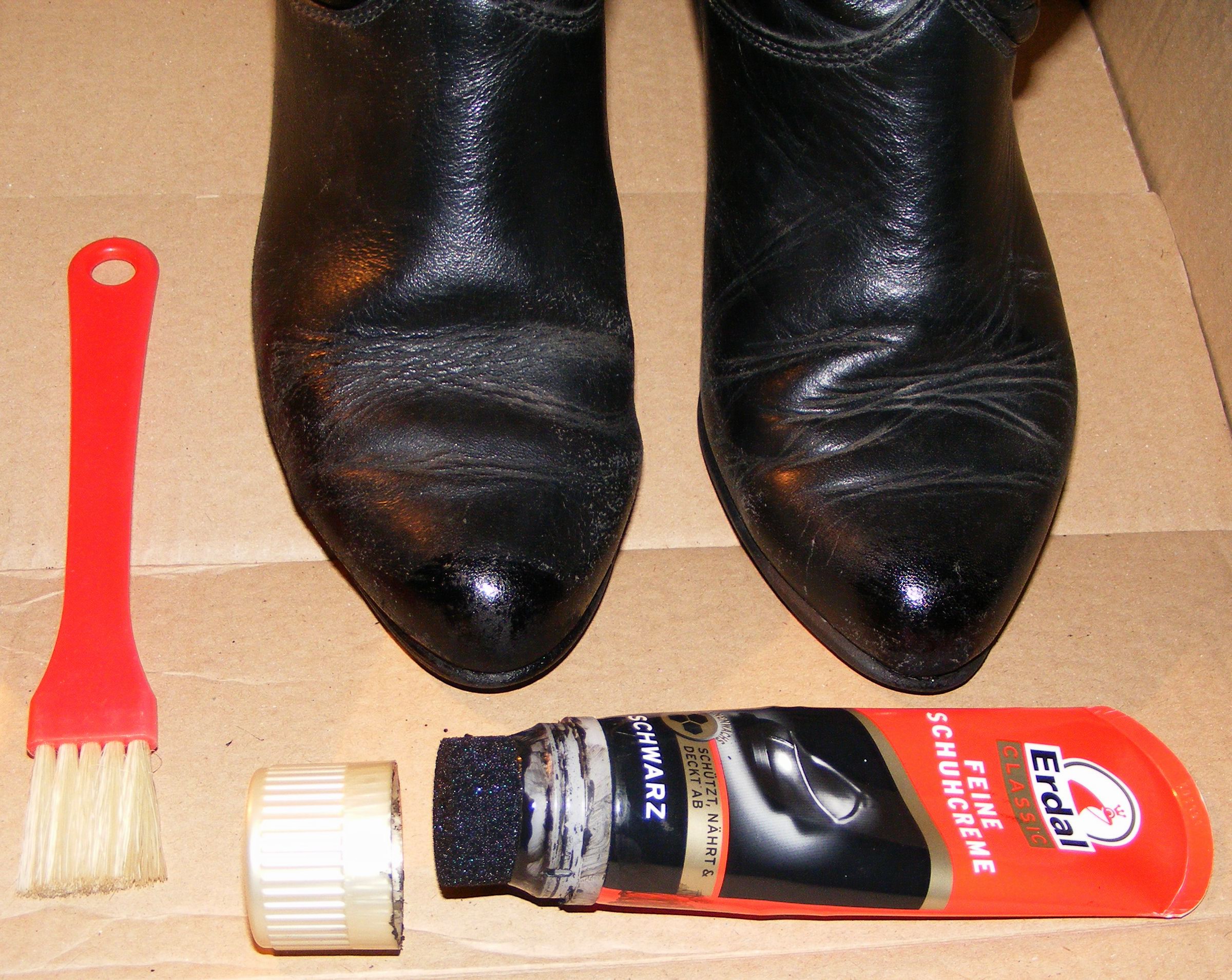 Gut - man könnte jetzt die "Gebrauchtwaren" im "Auffindezustand" weiter Tragen, bis sie hoffnungslos verloren sind. Mache ich z.B. mit passenden Synthetikschuhen so, u.a. als Arbeitsschuhe.