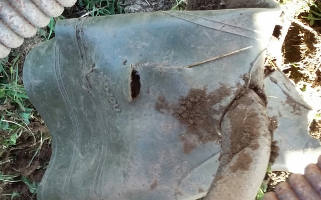 Nach zwei Stunden harter Arbeit war der Stiefel total zerfetzt. :twisted: