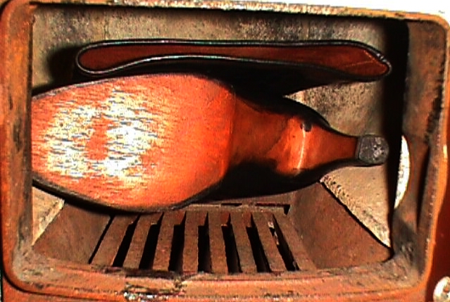 Fast alle Teile mit Reißverschluß habe ich ohne sie Aufzuarbeiten zumeist sogleich nach Eingang verbrannt. Eigentlich hat somit nur ein einziges Paar aus der "Badeofenzeit" überlebt, weil ich sie gern als Hausarbeitsschuhe getragen hatte und durch Zufall beim Umbau der Heizungsanlage "vergessen" wurden, sie noch im Badeofen zu verfeuern! (siehe Bericht)