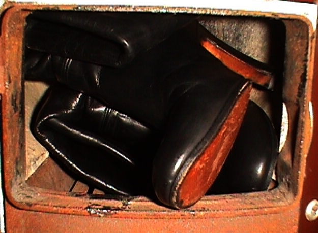 Fast alle Teile mit Reißverschluß habe ich ohne sie Aufzuarbeiten zumeist sogleich nach Eingang verbrannt. Eigentlich hat somit nur ein einziges Paar aus der "Badeofenzeit" überlebt, weil ich sie gern als Hausarbeitsschuhe getragen hatte und durch Zufall beim Umbau der Heizungsanlage "vergessen" wurden, sie noch im Badeofen zu verfeuern! (siehe Bericht)