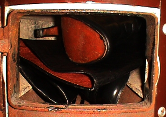 Fast alle Teile mit Reißverschluß habe ich ohne sie Aufzuarbeiten zumeist sogleich nach Eingang verbrannt. Eigentlich hat somit nur ein einziges Paar aus der "Badeofenzeit" überlebt, weil ich sie gern als Hausarbeitsschuhe getragen hatte und durch Zufall beim Umbau der Heizungsanlage "vergessen" wurden, sie noch im Badeofen zu verfeuern! (siehe Bericht)