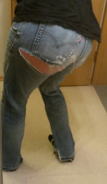 Da ich u.a. zerrissene Jeans geil finde, dachte ich mir, dass ich hier einfach mal ein Foto von (einer) meiner Jeans zeige.