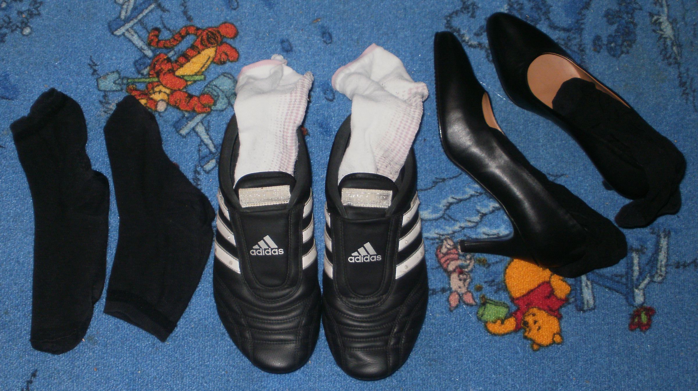 Ich selbst kann leider nicht mit solch einer Sammlung käsiger Sportsocken dienen, ich trage meist Nylons oder Sneakersöckchen und die Kleidung meines Mannes kommt in aller Regel immer gleich in die Maschine.