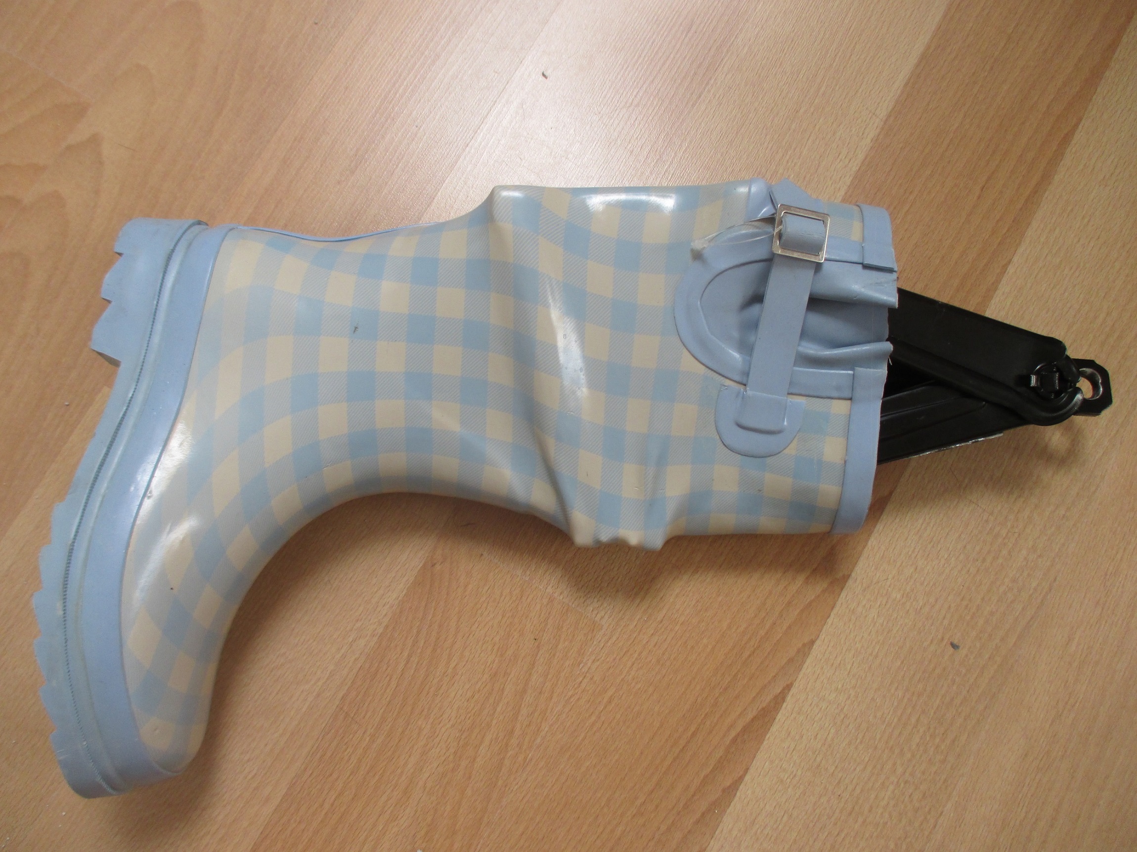 Den zweiten Stiefel habe ich bereits in viele Einzelteile zerschnitten und sicherheitshalber entsorgt. Da meine Freundin zur Zeit immer andere Gummistiefel benutzt, wird ihr der Verlust dieser gar nicht so schnell auffallen. Bei Gelegenheit muss ich allerdings wieder mal für Gummistiefelnachschub sorgen.