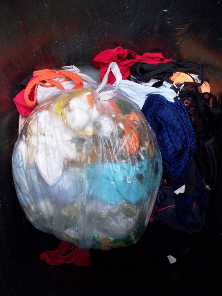 den ganzen Abfall "ordentlich" zusammen gestellt. Ab jetzt sind das keine Kleidungsstücke mehr, sondern nur noch zu entsorgender Abfall!