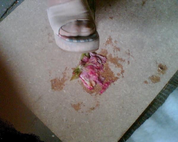 Die Steigerung wäre, wenn die Strumpfhose von einer Frau wäre und damit die Blumen zerstampft würden