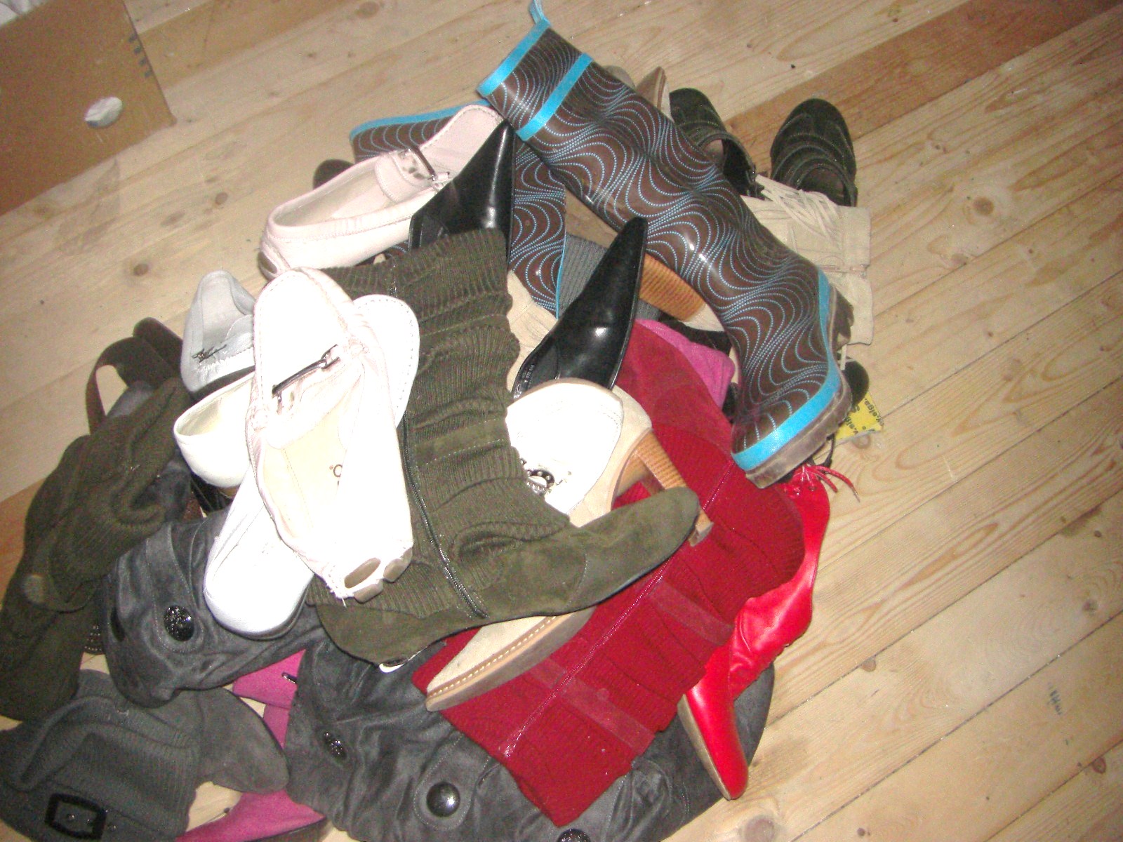 So Leute meine Schwester und ich haben aussortiert obwohl das meiste von ihr stammt sind auch ein Paar Schuhe Stiefel von mir dabei!Fragt bitte nicht wieviel Paare es insgesammt sind aber es ist eine menge Material dabei und wer uns das Porto ersetzt na der kann dieses große Paket bald sein eigen nennen!