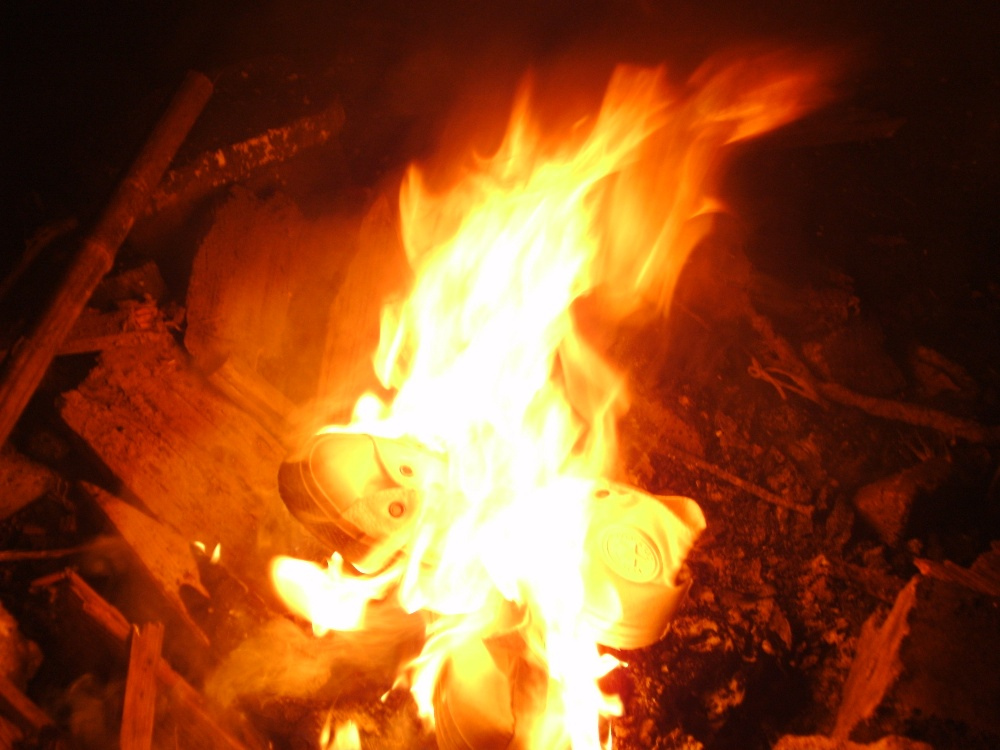 Für das schonungslose "Herumtoben" wurden damals ja meist billige Stoffschuhe (ähnlich der heutigen "Chucks") mitgenommen, die dann am Abschlußabend ins Lagerfeuer kamen. Tut mir sehr leid für die "Müllis": Mit "Tonne" war da Nichts! :mrgreen: