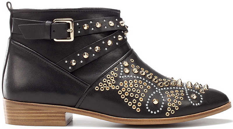 Zara Trafaluc - Nieten-Stiefeletten schwarz/gold Leder