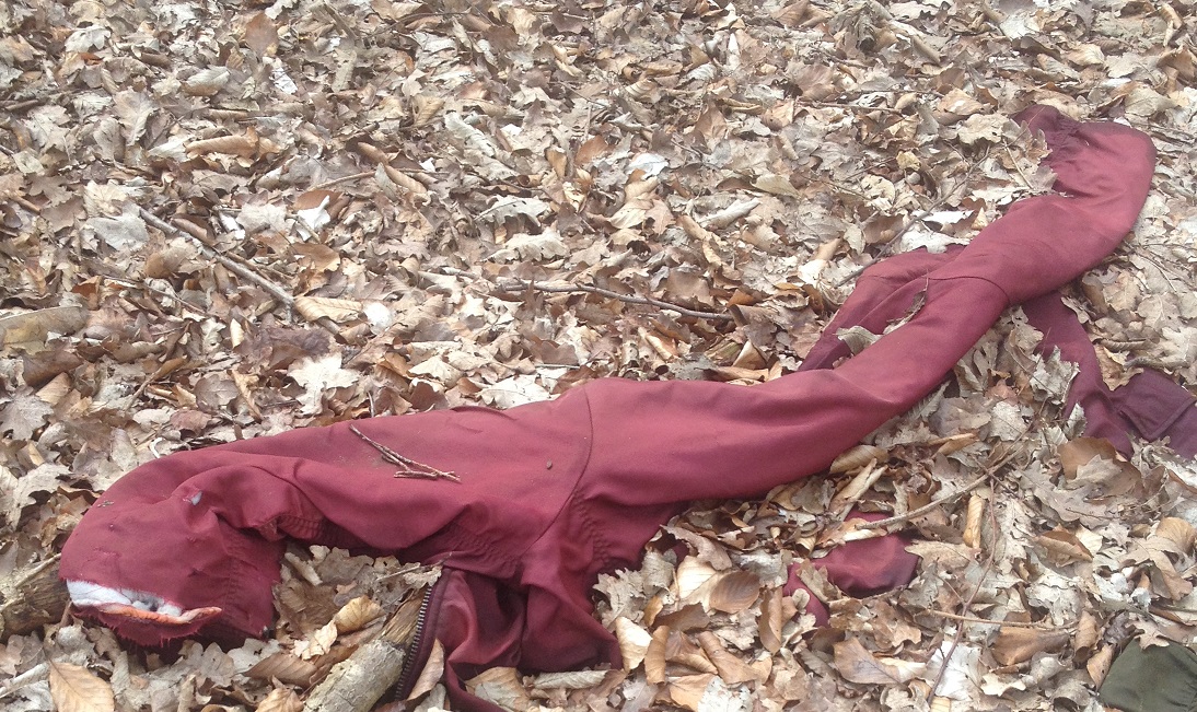 da sind die beiden Jacken. Die rote ist schon angefressen am Ärmel.Die grüne ist scheinbar noch in Ordnung. Als erstes werd ich sie am Baum aufhängen zum trocknen. dann mal sehen wie sie noch aussehen