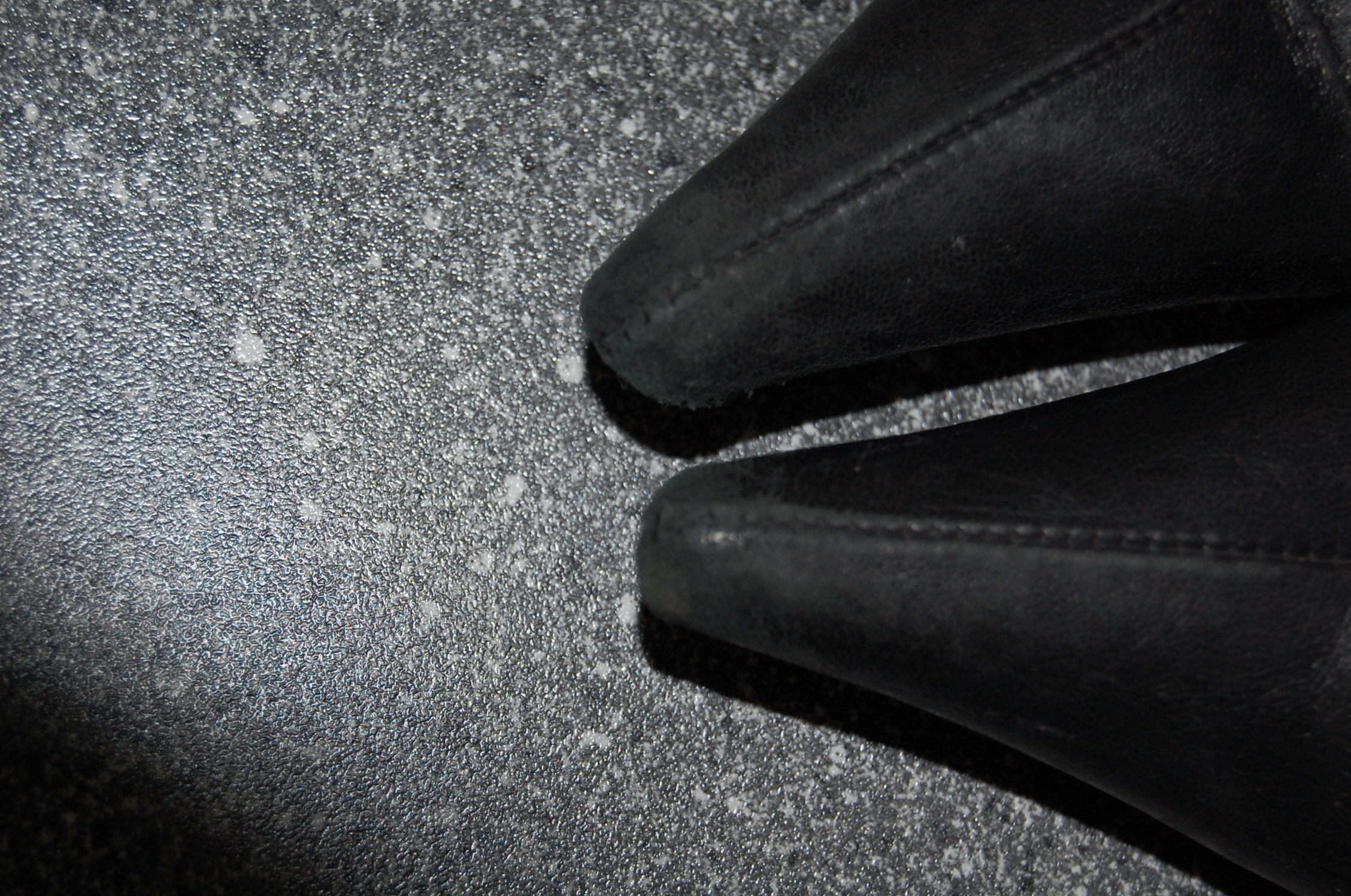 was passiert, wenn die Schuhspitzen nicht verstärkt sind, sieht man deutlich bei den schwarzen Stiefelletten. Dann wird es vorne feucht und zügig.