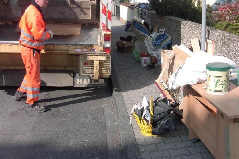 Der Müllmann braucht sich beim Sperrmüll-Laden keine große Mühe zu machen, denn die Presse holt sich eh alles relativ zuverlässig.