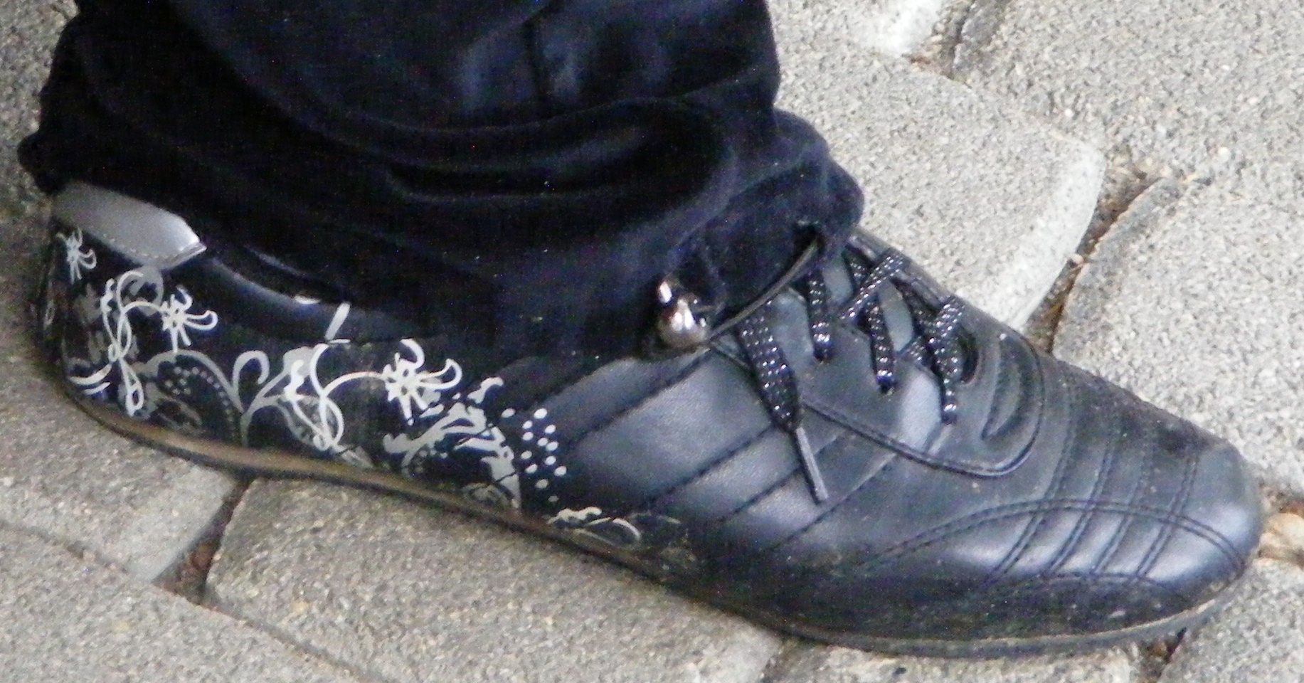 (Den lieben, ach so kritischen Burner1973 würde es Freuen: Es waren ein Paar wirklich schöne schwarze klassische Lederpumps, die ich sogar auch "im Auge" hatte, aber ich wollte das Mädel nicht noch mal "ärgern", es sah so geil aus, mit ihrer Fetzen-Shorts, der schwarzen Strumpfhose und den weißen Söckchen ...