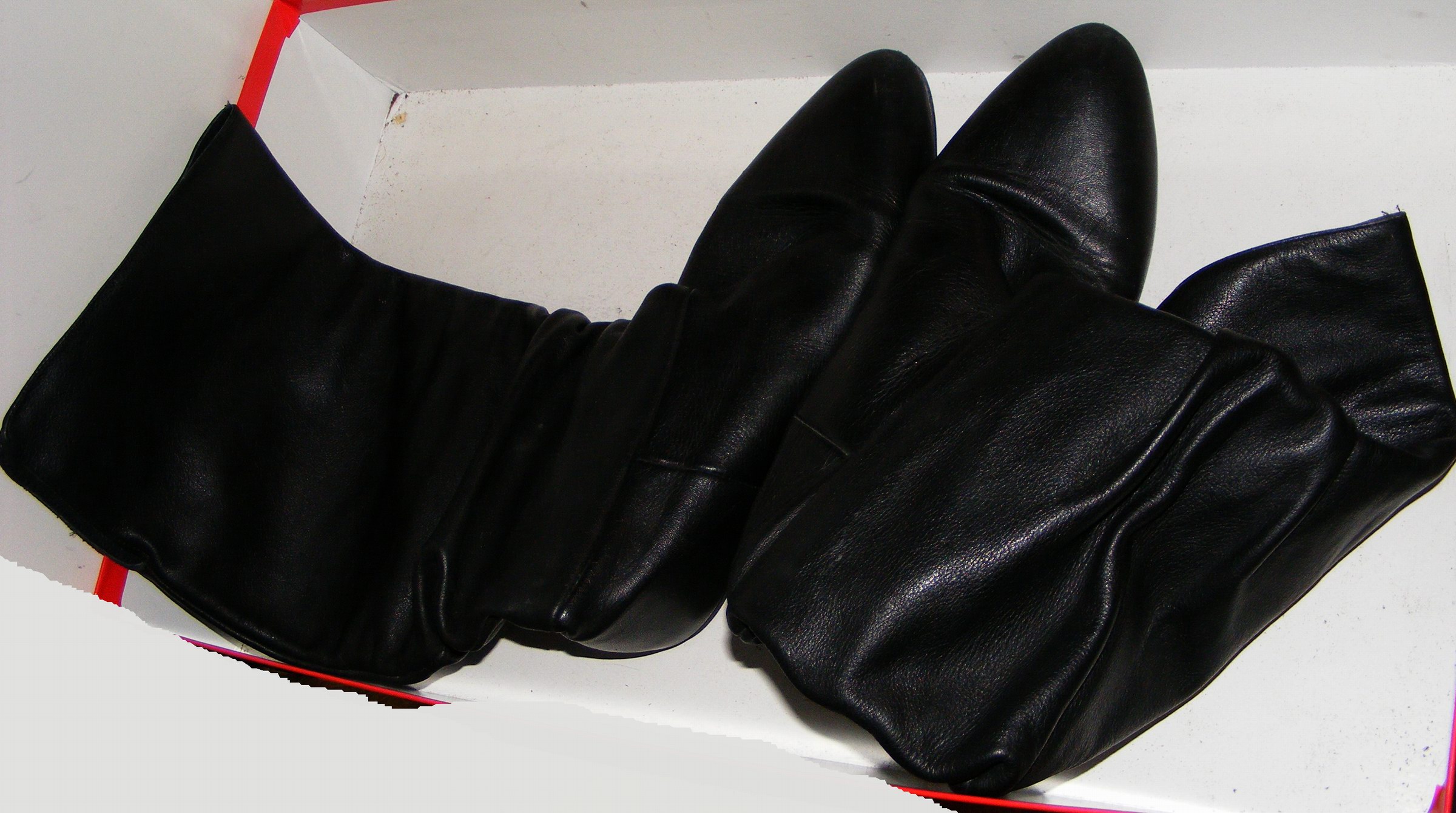 Diese vier Paare sind hygiene-gereinigt und dienen mir als Hausschuhe - für das perfekte Gefühlserlebnis angenehmer Momente auf dem Fernsehsofa, wenn mein Mann mir die Füße massiert, dabei die Schäfte bis zum Knöchel rafft, bis ich ihm dann zwischen den zellstoffweichen warmen Lederfalten verdientermaßen "so richtig Einen abholen" kann ...