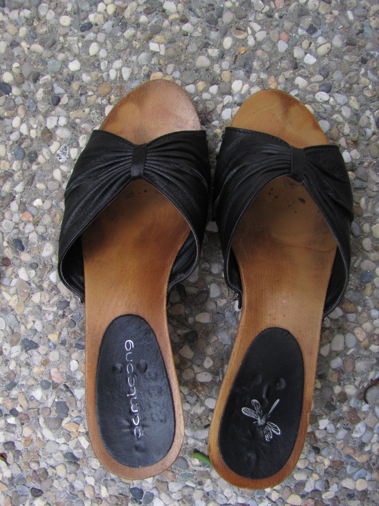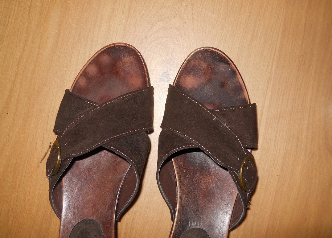 Hier sind die Pandoletten nach den Ferien. Meinem Mann fielen fast die Augen aus dem Kopf, so stark hat sich mein Fussabdruck auf der Sohle abgebildet (aufgenonmmen 13-08-2012)