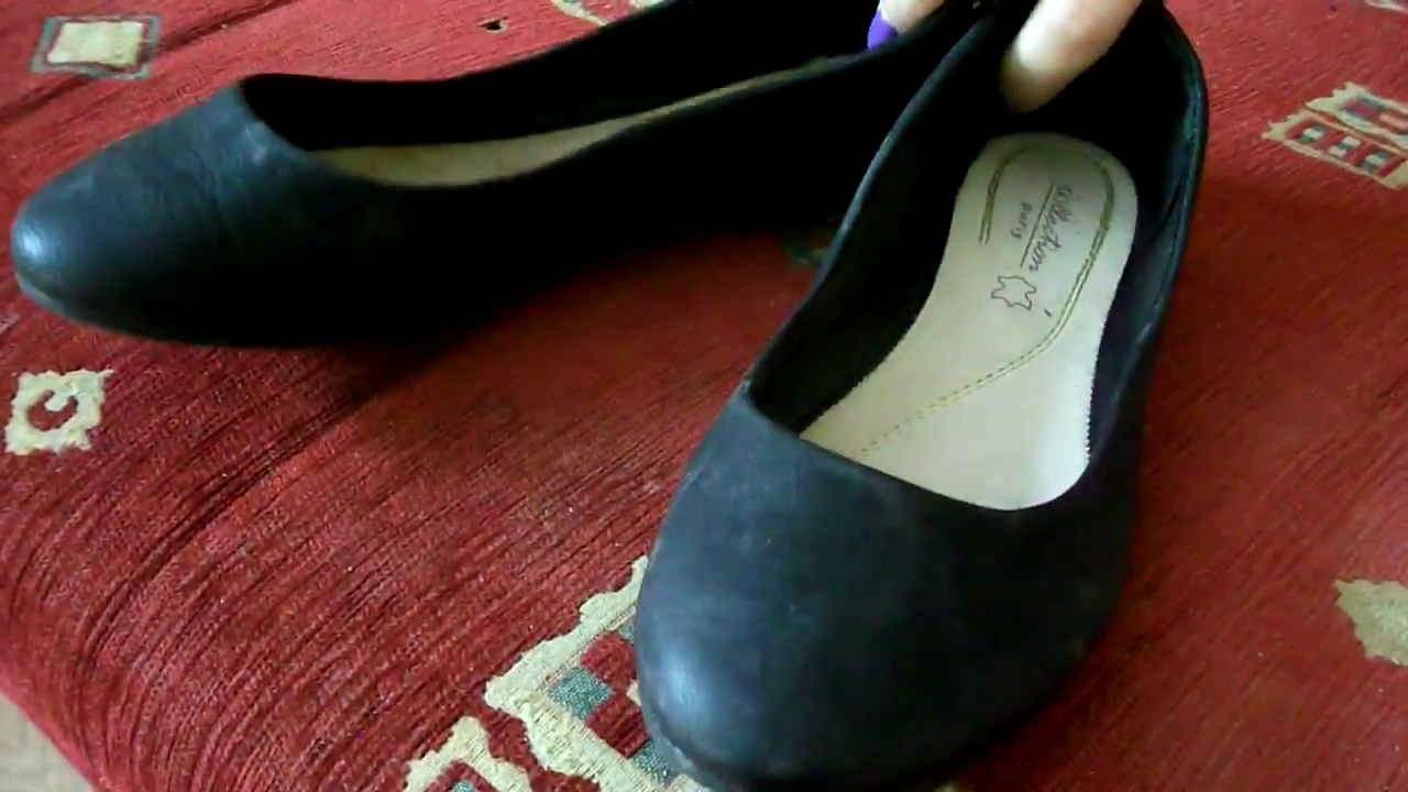 Hier sind meine bis heute Vormittag getragenen Sperrmüll-Ballerinas, reine Arbeitsschuhe, die nun doch wieder bei mir zu Hause angekommen, eventuell beim nächsten "Kochtag" oder bei mir im Gartenofen verfeuert werden.