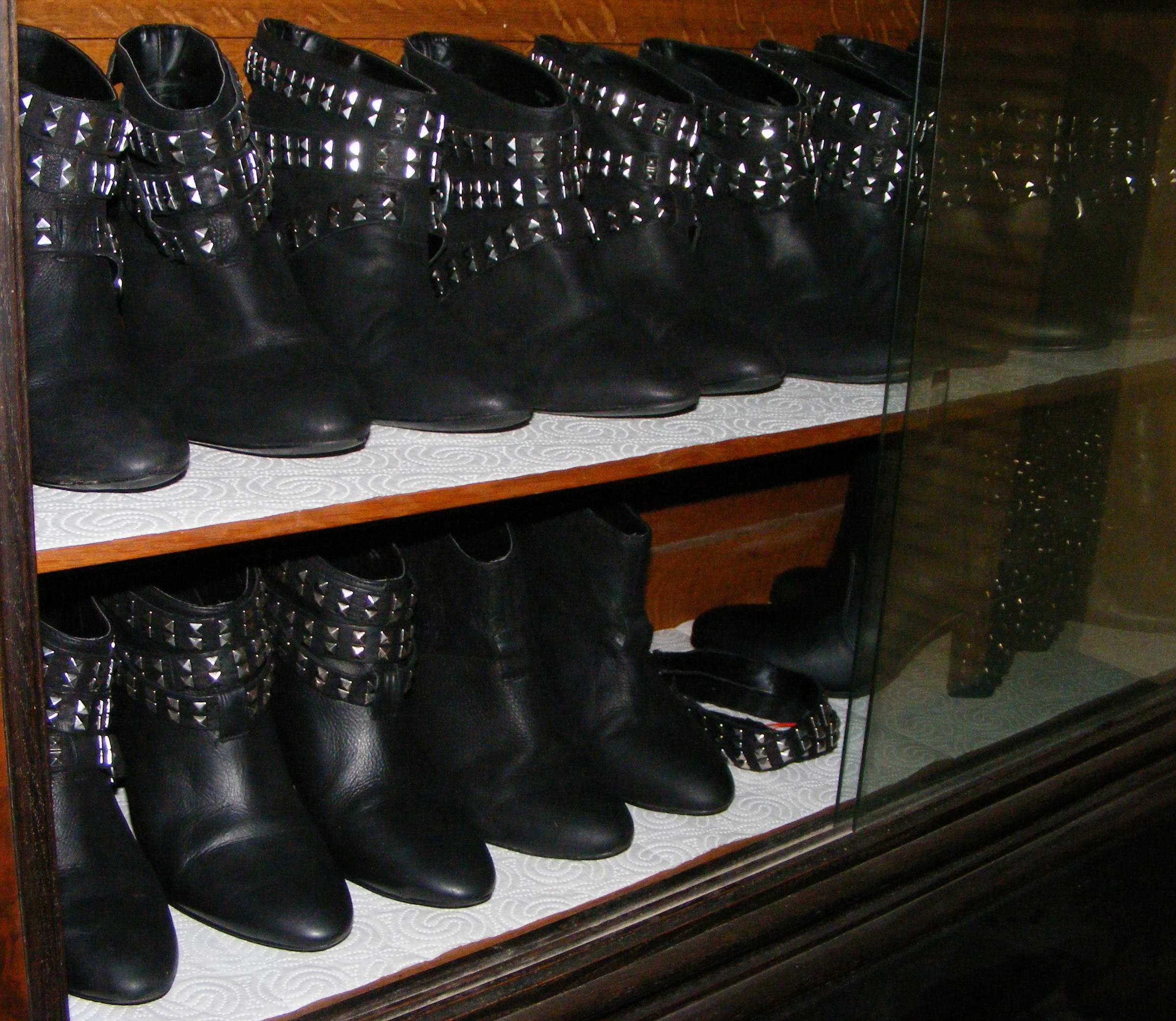 "In ihrer ... Wohnung hat sie Stiefel in allen Farben und Materialien ..." Eine Frau wird´s kaum Überraschen, kommt vermutlich nicht allzu selten vor ...