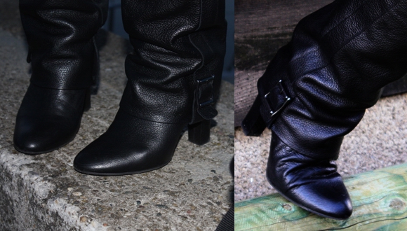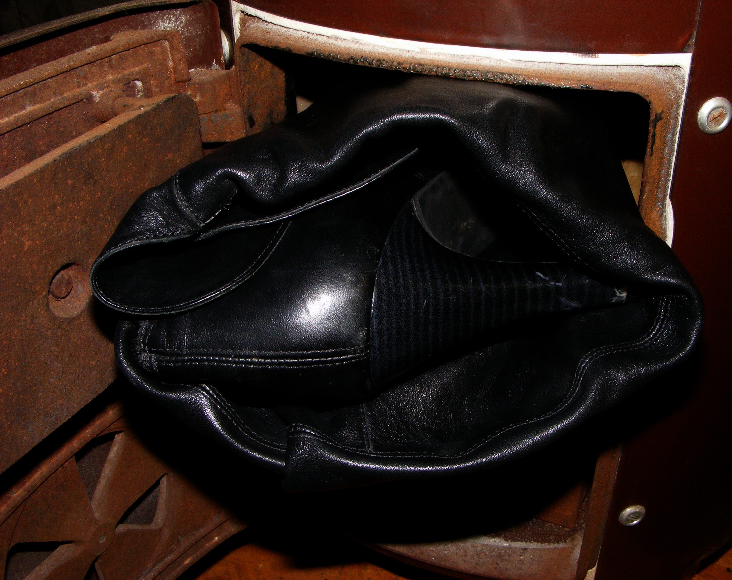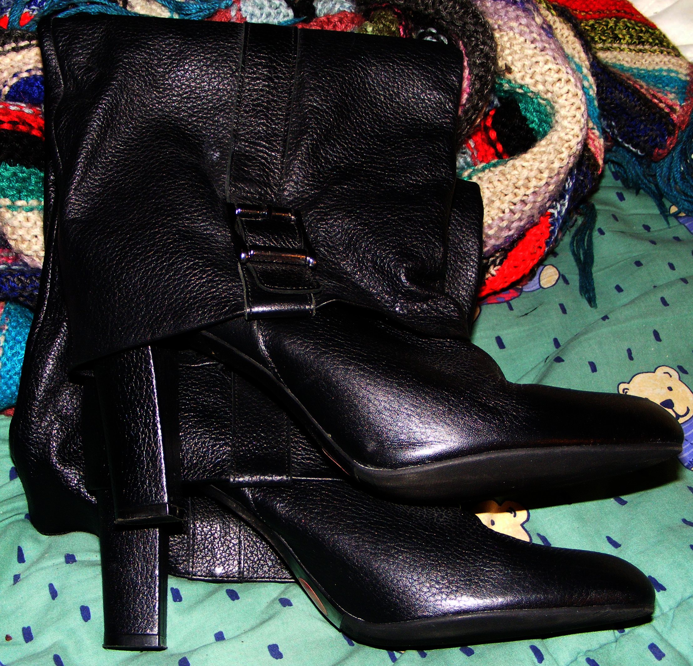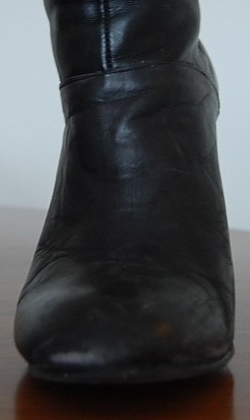 Die vorher nie gepflegten Stiefel (in 40) von den letzten beiden Bildern stammen aus einem Verbrennungsauftrag. Die waren der Vorbesitzerin (Größe 39!) immer etwas zu knapp. Mein Mann und ich haben sie auf dem Fernsehsofa so lange und extrem mit veschiedensten Flüssigkeiten "gequält", daß sie mir nun wie von Allein auf die Füße rutschen! :P