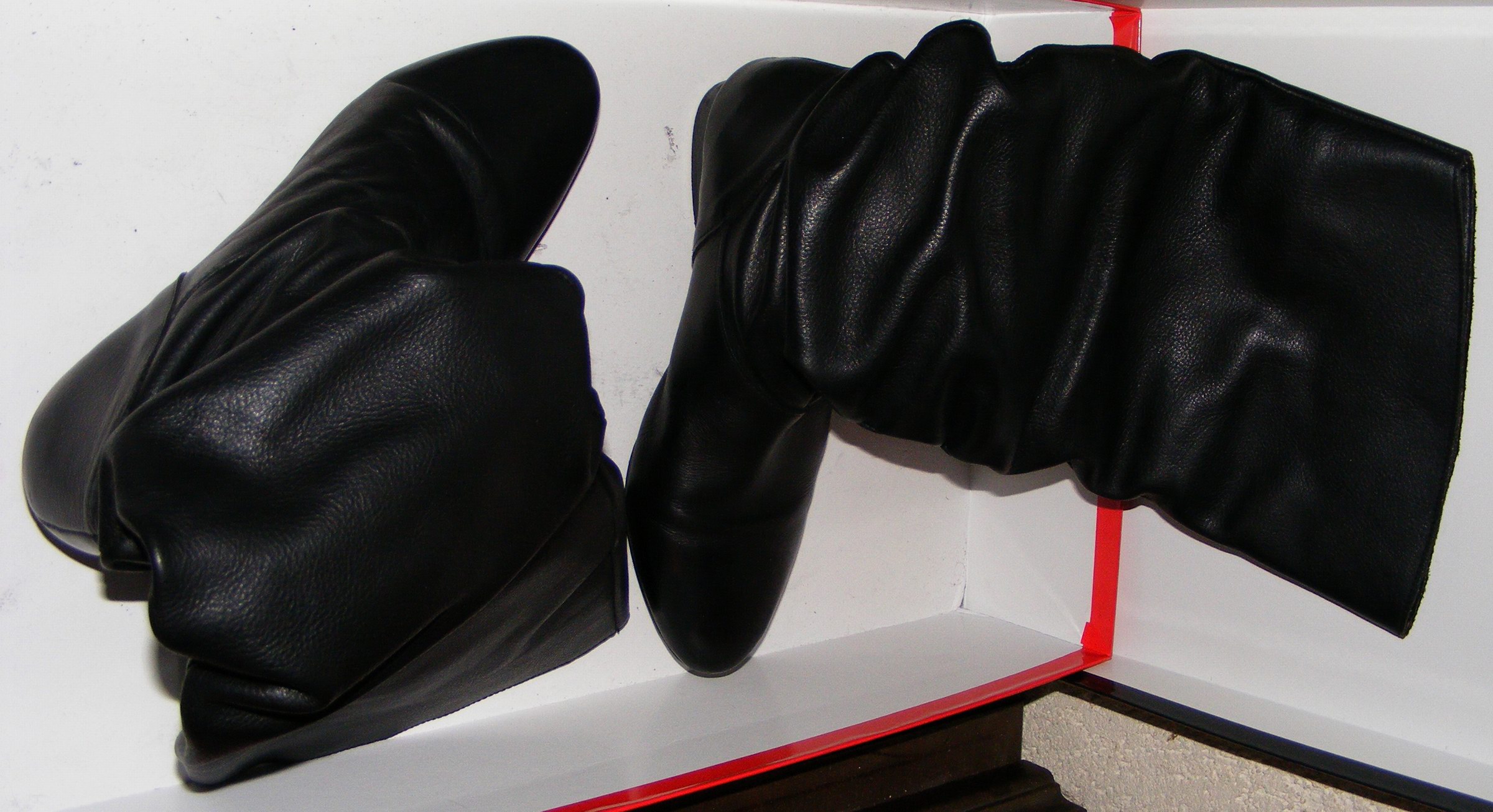 Das Grandiose an diesen Teilen sind mal wieder die extrem weiten weichen Schäfte, die beim Tragen ohne lange Hose nach einigen Schritten einen erregenden Faltenwurf haben; macht auch einen geilen Anblick "auf der Straße" ... (Sabber)