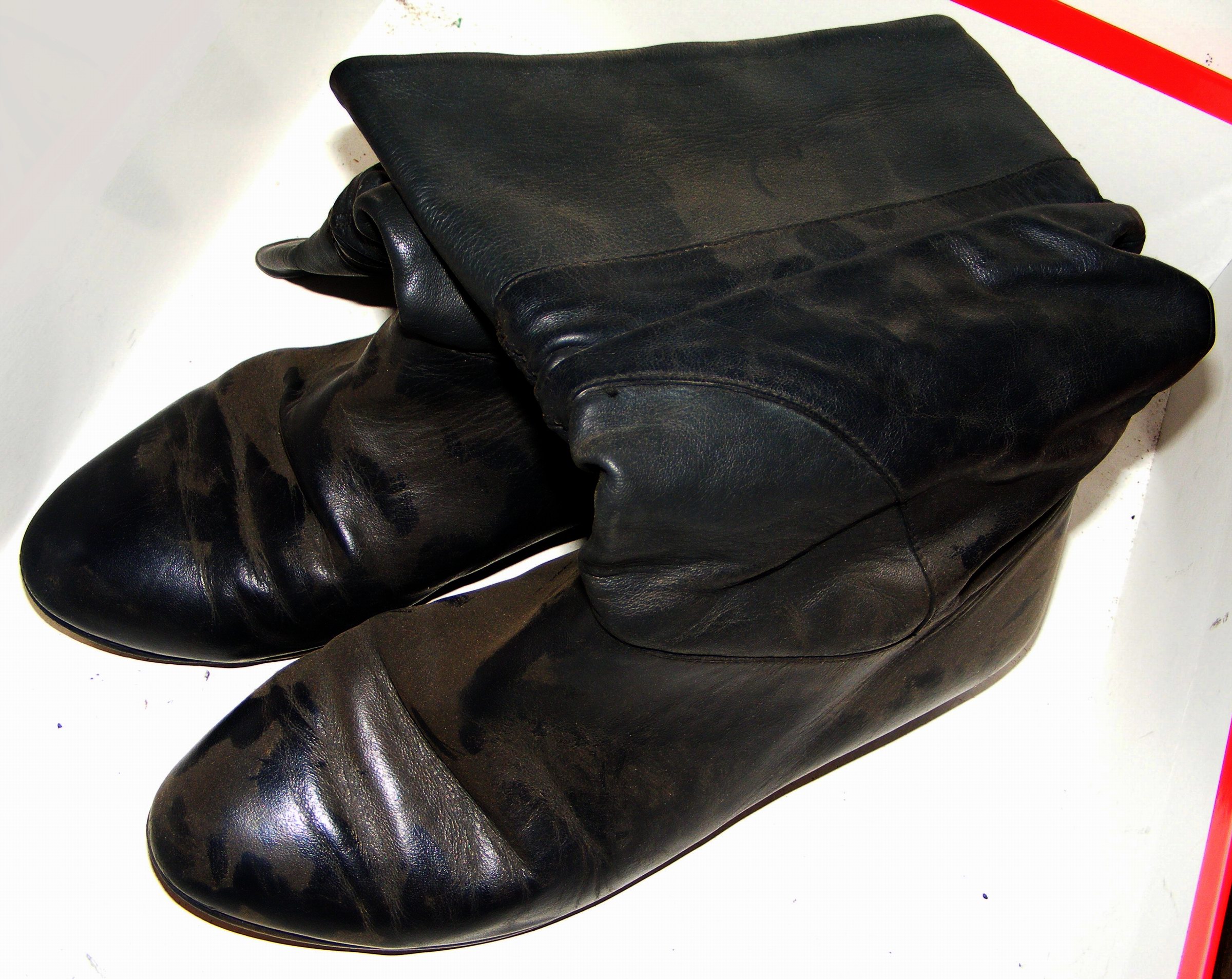 Vermutlich hatte die Vorbesitzerin diese Stiefelchen beim Rasenmähen getragen und danach gemeinsam mit dem Grasschnitt "entsorgt". :roll: