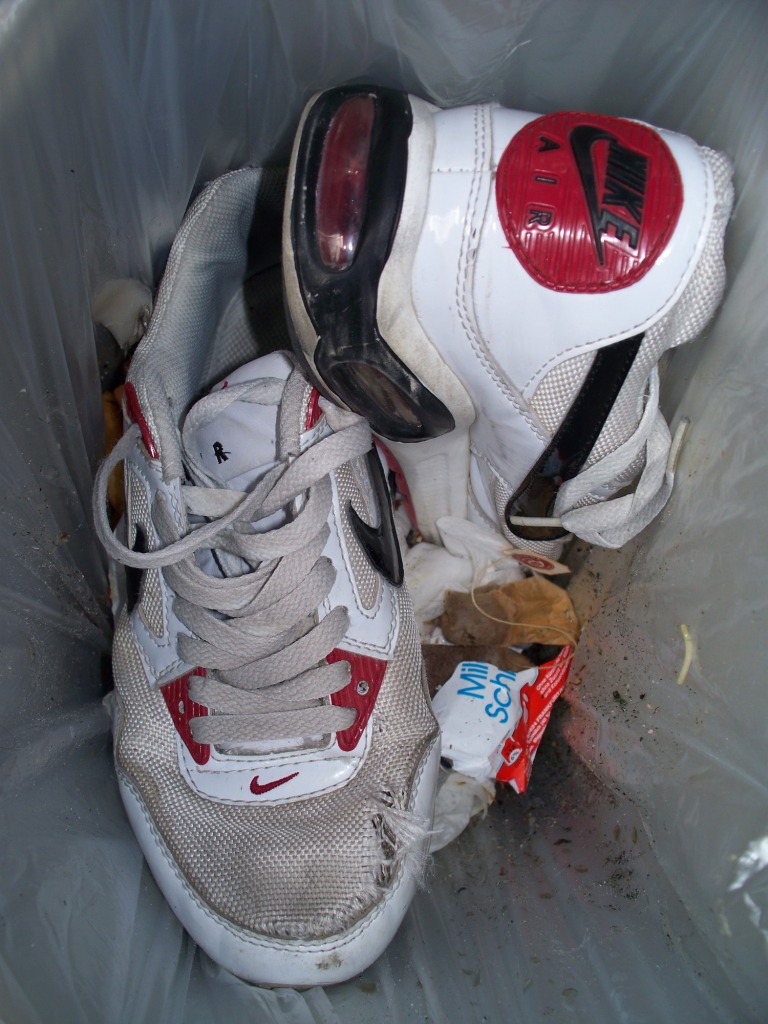 Die Nikes nun im Müll.