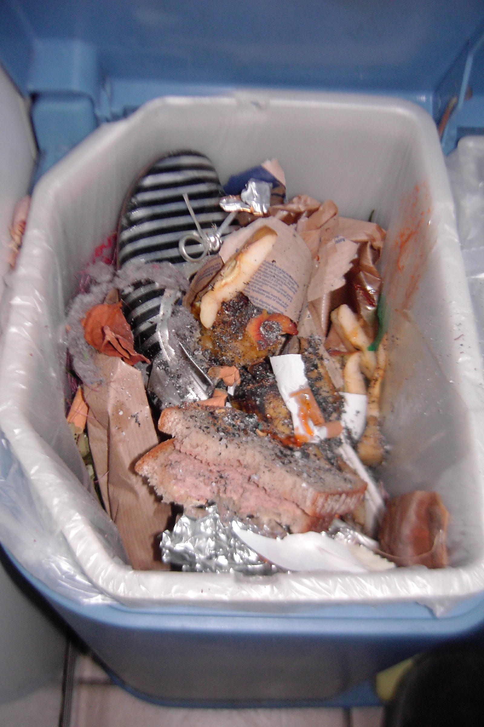 Die Sneakers waren hygienisch mit dem Küchendreck in einem fest zugeknoteten Müllbeutel.