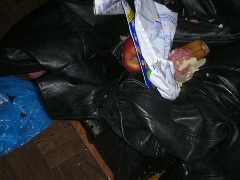 da hätte der Jan66 sicher seine Freude dran: Selbst ein Ledermantel muss in einen total siffigen Küchenmülleimer. Sehr geile Bilder.