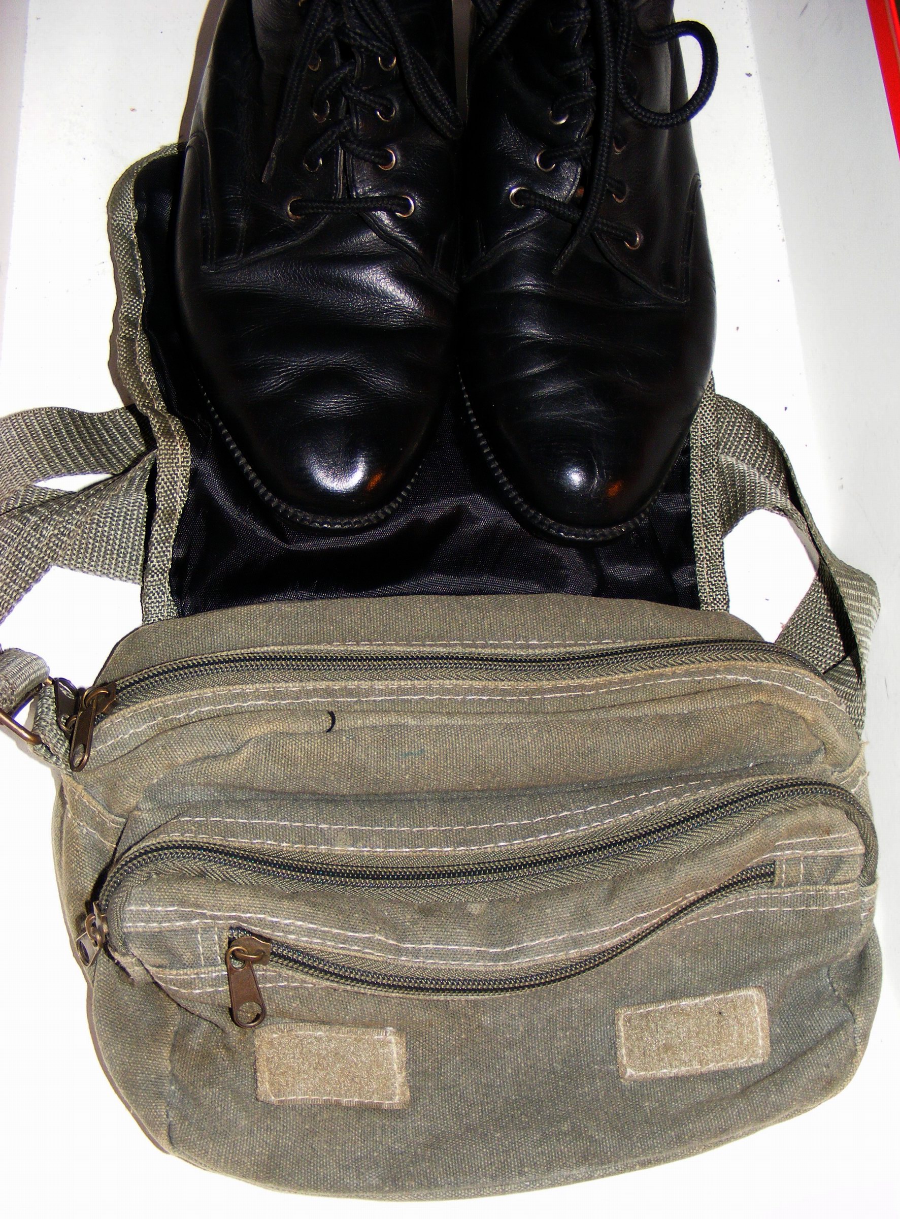 Wie bereits gezeigt, schöne schwarze Echtledertaschen, zumeist nietenverziert, wurden üblicherweise "verschont", "auf Links" gedreht gründlich ausgebürstet und dann mit starkfärbender Schuhkreme aufpoliert. Davon mögen, nicht nur bei mir, sicher noch einige Teile "Leben". :P