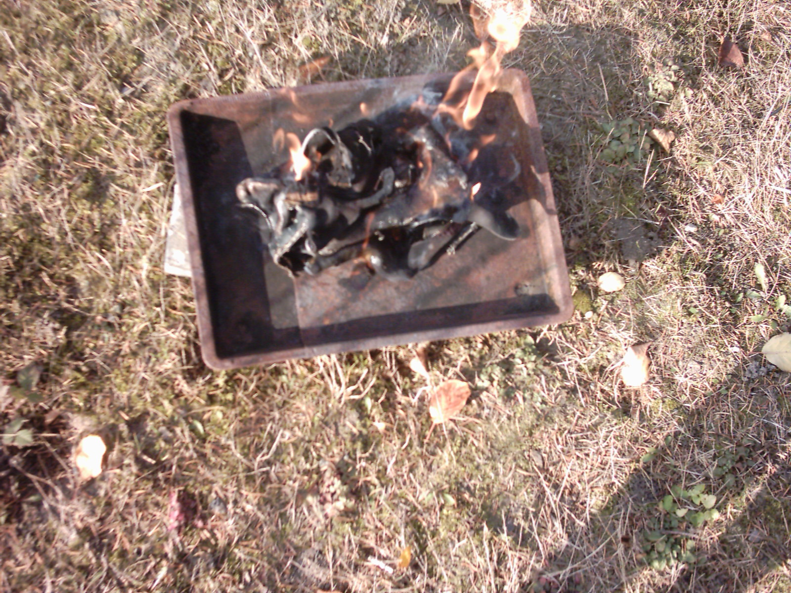 Dann ging es in den Garten zur Feuerstelle das war eben so eine Feuerschale die Lederhose darauf gelegt mit Benzin übergossen und dann angezündet.