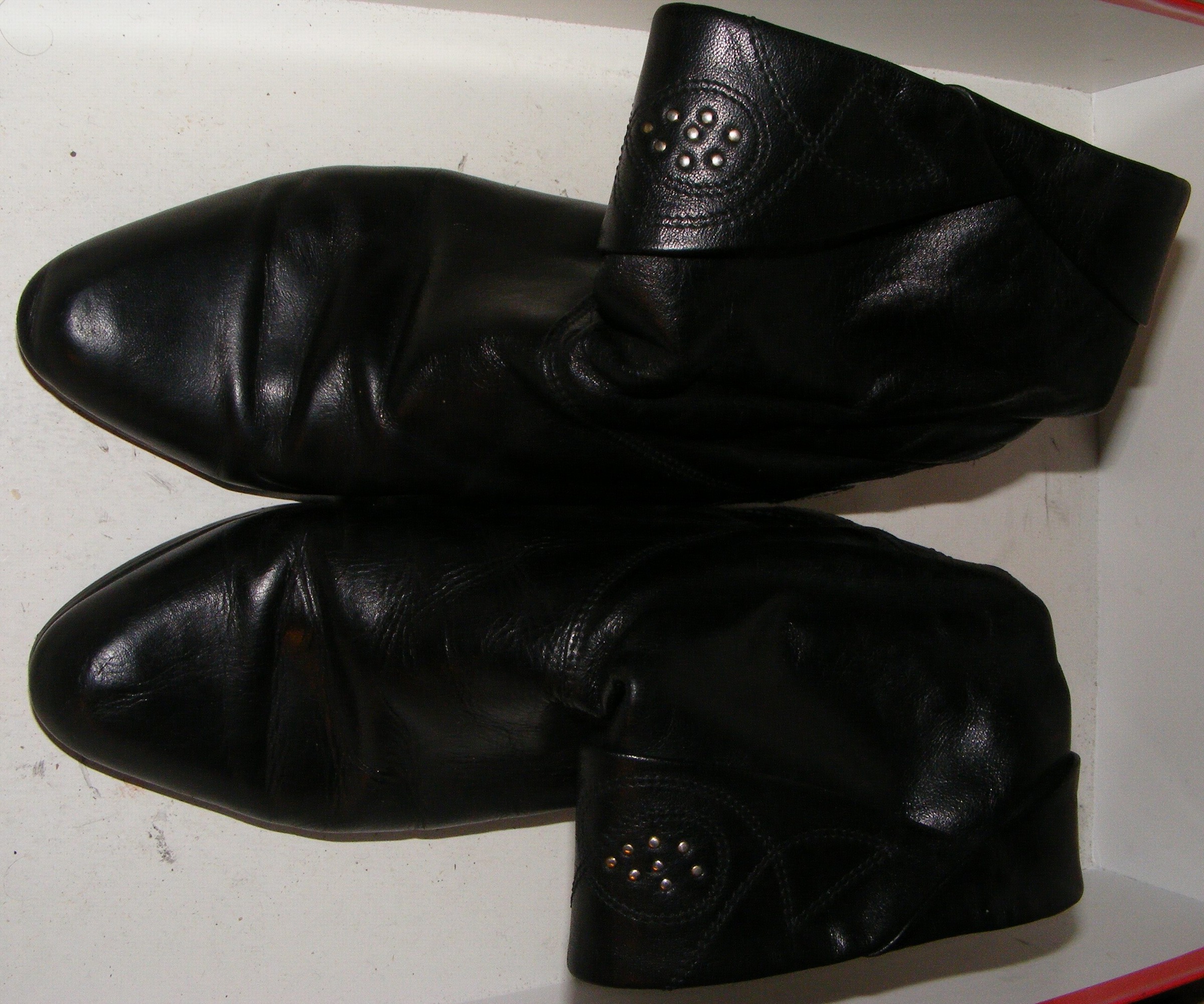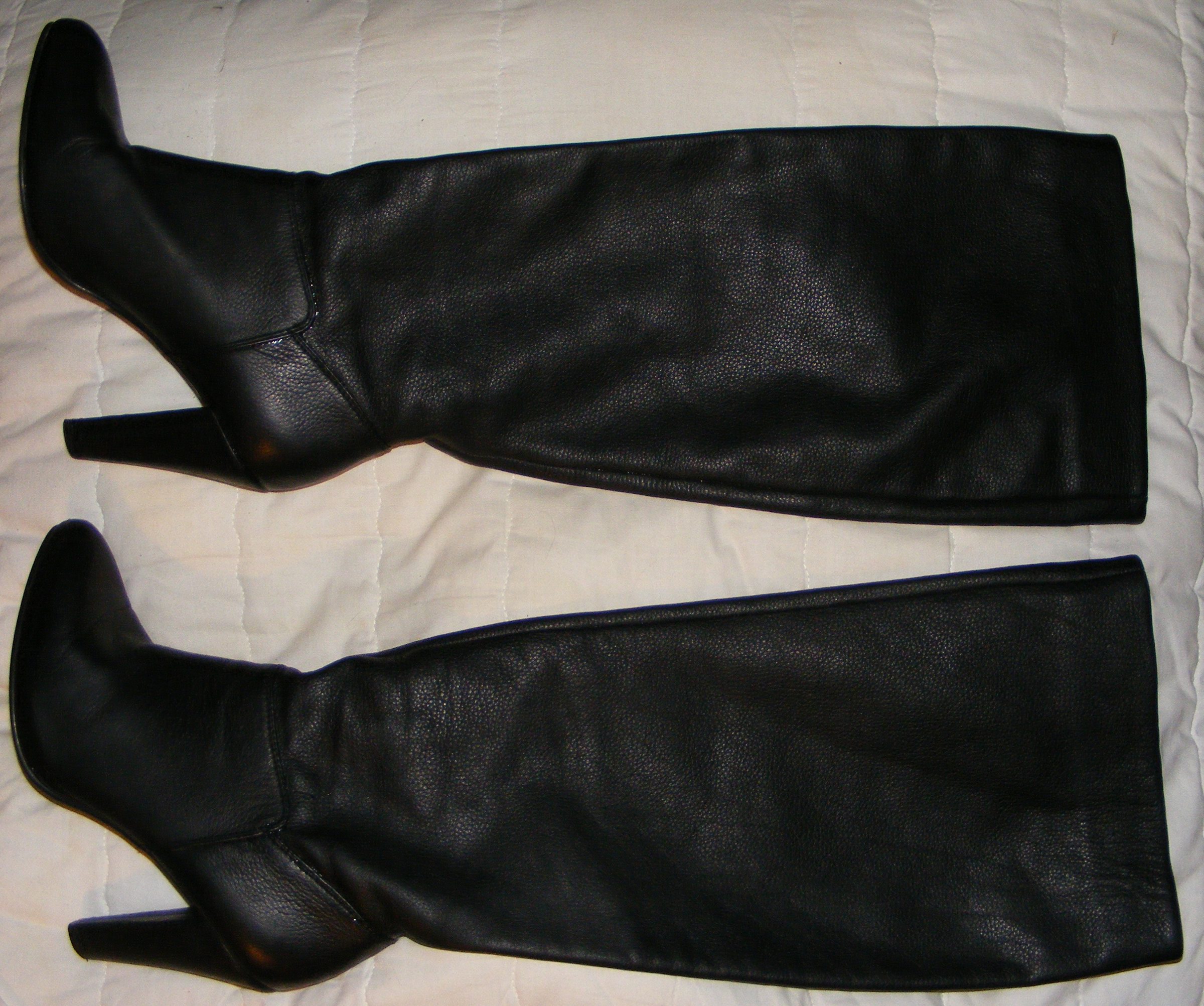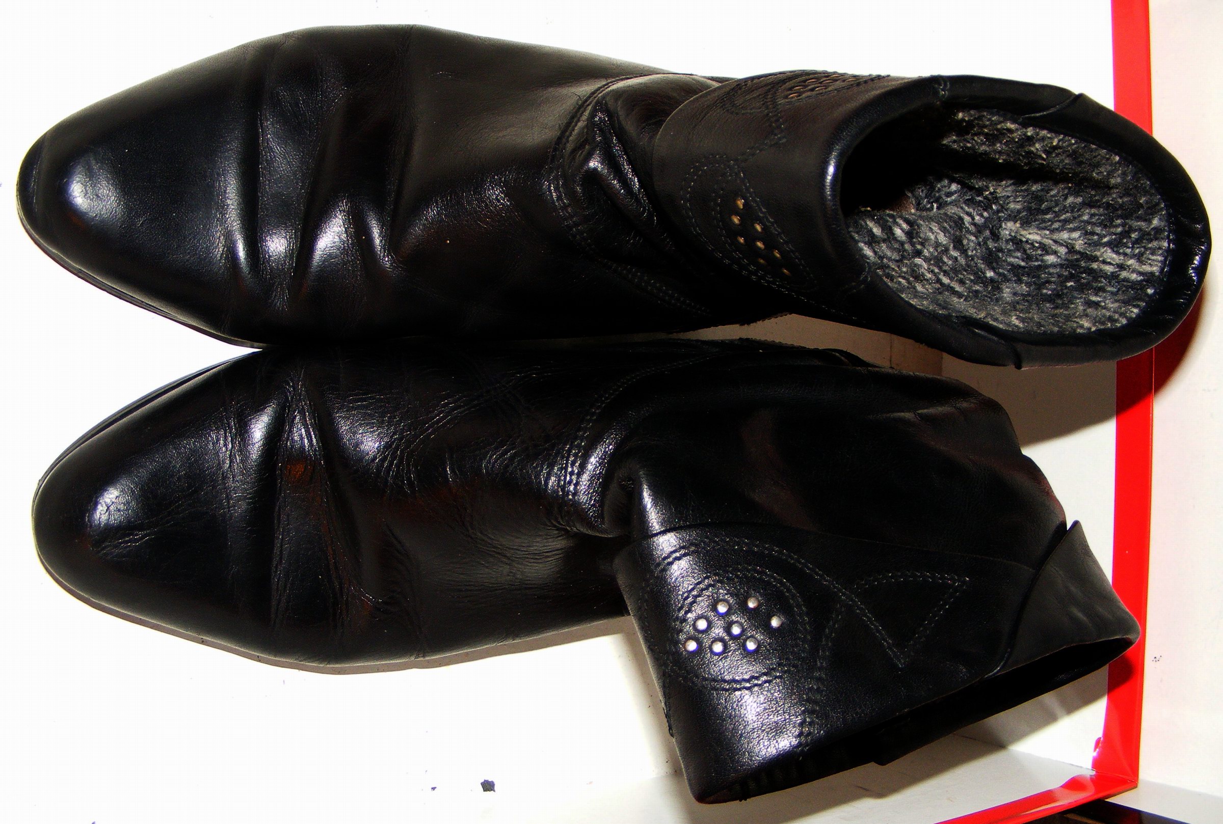 Diese Stiefel sind eine reichliche 38, eher 39, ich konnte sie also noch den folgenden Winter Tragen, doch dann waren sie wirklich zu Klein. Dies geschah aber bereits, nach dem ausdrücklichen Verbot an meine Mutti, "richtige" Damenschuhe von mir zu Verbrennen. Und, sie hat sich daran gehalten! Ich weiß nicht mehr, wann und ob ich es selbst tat - die Stiefel kamen in einen Karton und dann auf den Boden im Elternhaus. Das aber wiederum vor dem Tag, als ich mein Zimmer aufräumte und erstmalig alles Kaputte und zu Kleine selbst im Badeofen verbrannte - dabei wären sie dann mit Sicherheit auch Verschwunden!